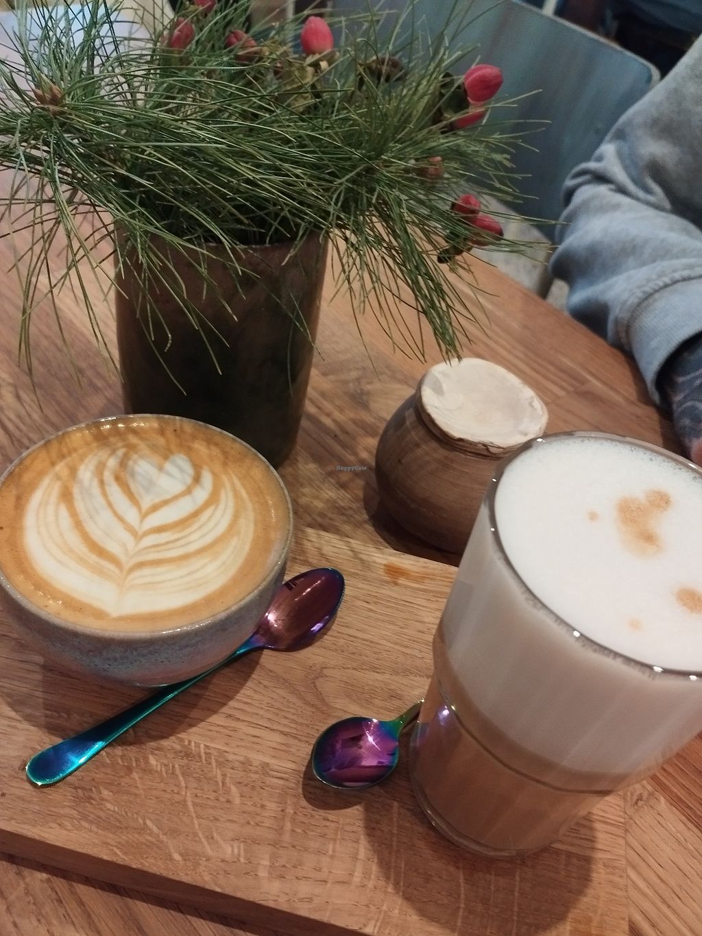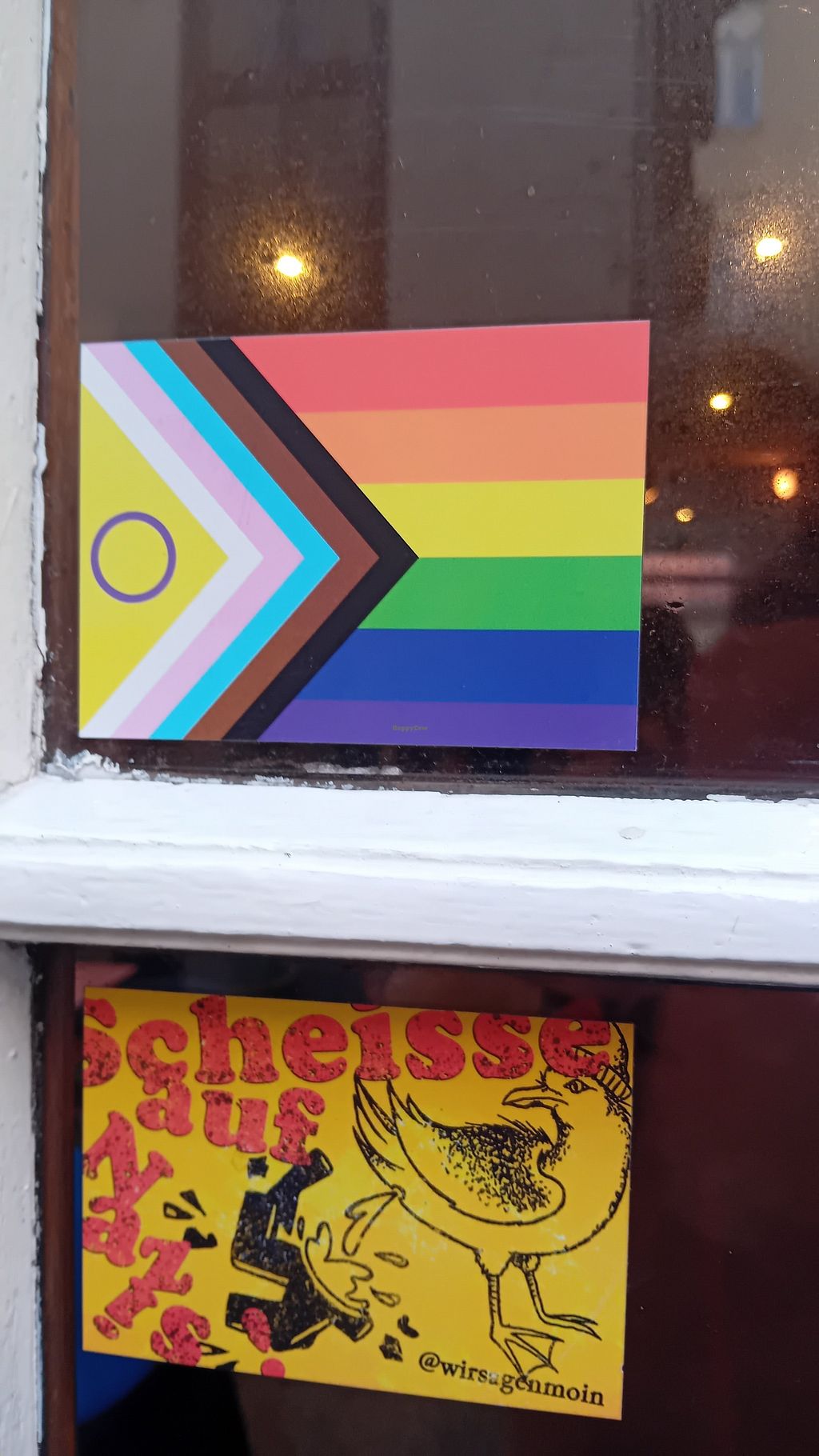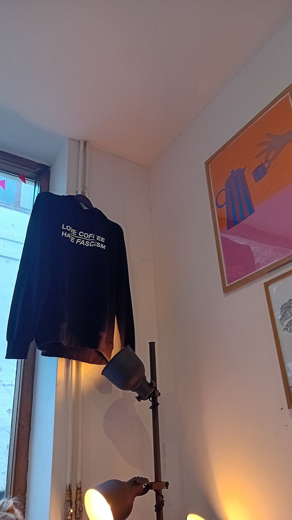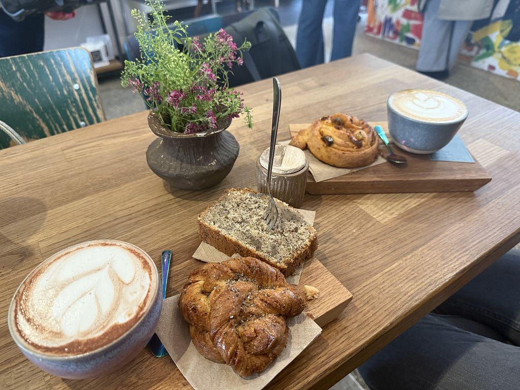Iced Latte mit Hafermilch und Bananenbrot, Schild ist die Info zur Rös…