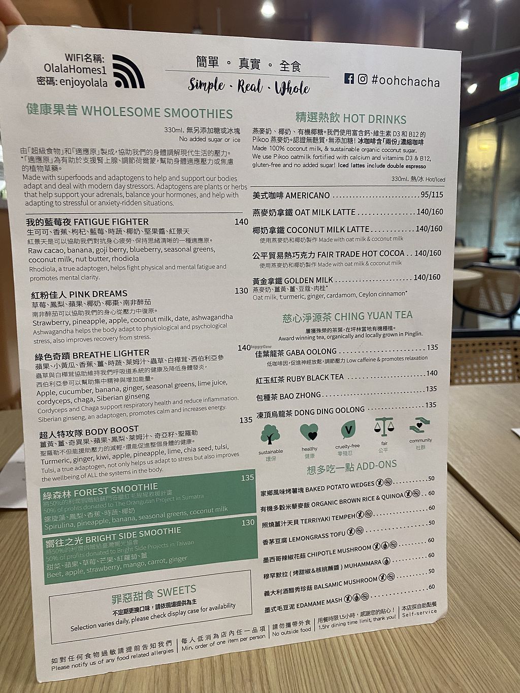 Healthy & delicious food served just like their main/first branch Ooh Cha Cha! Minimum order one item per person. Another great vegan eatery to go in Taipei!