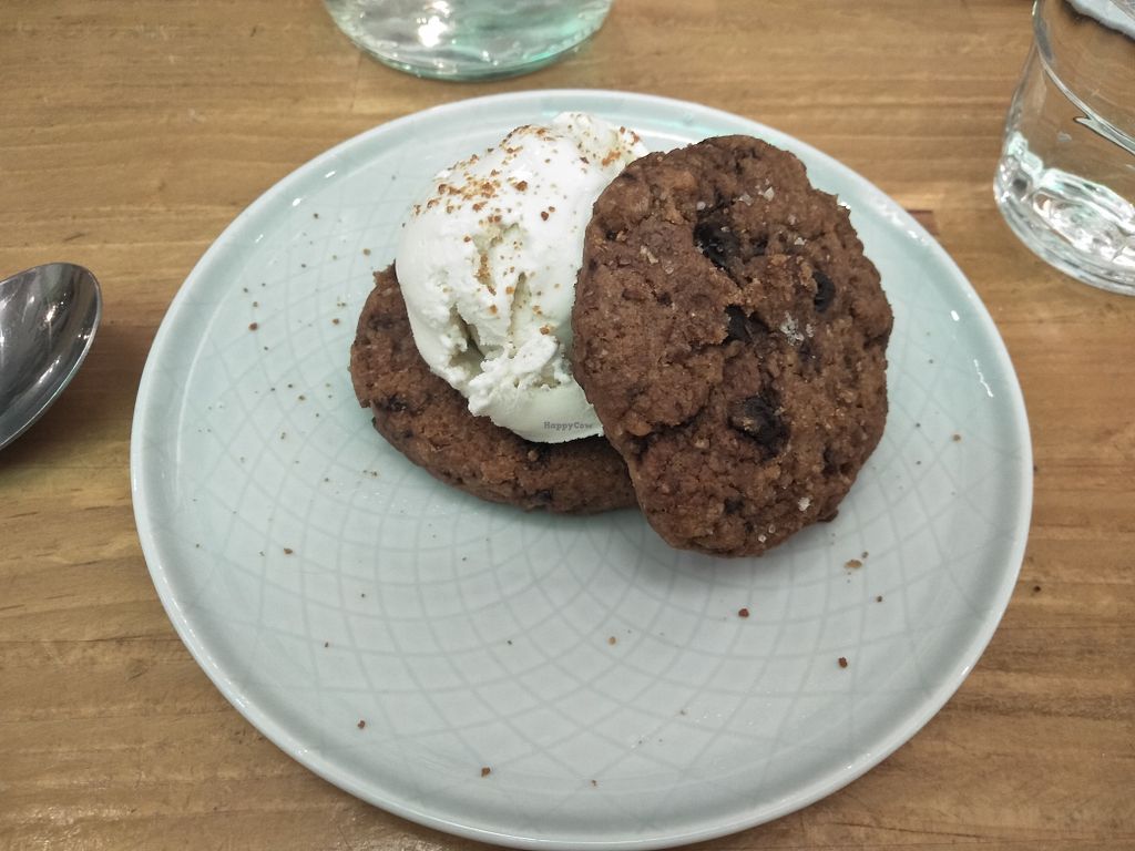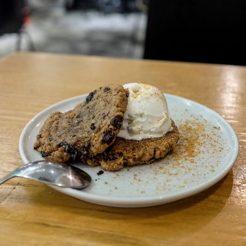 Pros: All vegan cafe, Ice cream cookie sandwich is delicious