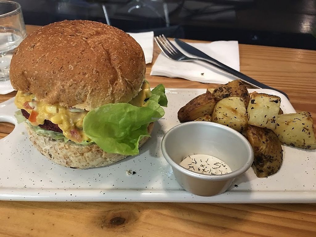 Been hear several times and tried several dishes.I found the ricotta burger very tasty,though the fried potatoes were a rather small portion moderate prices,fairly easy to find.