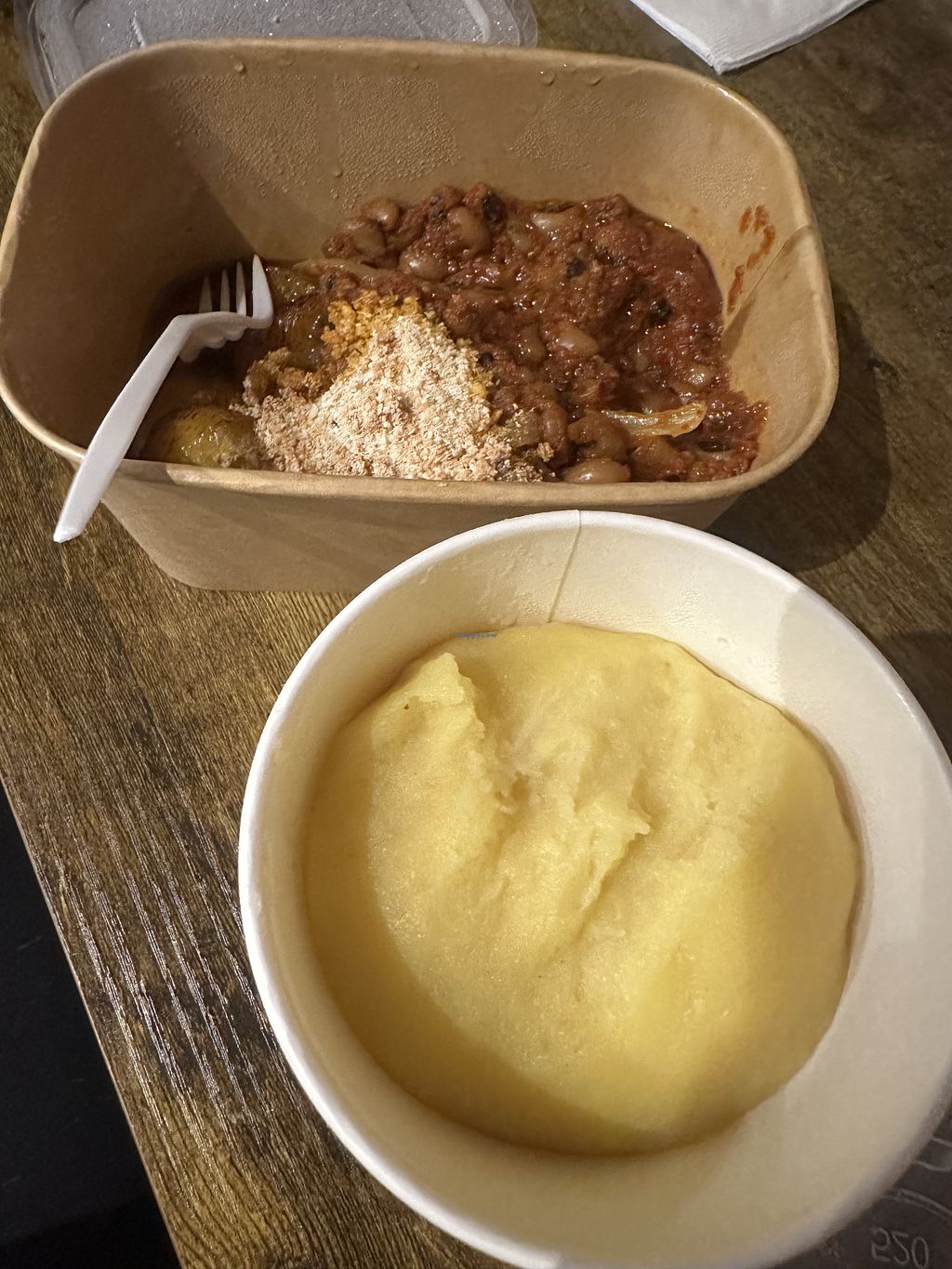 African Non-veg Serves meat, vegan options available. African restaurant serving vegan options, red red vegan peanut soup egusi jollof rice fufu plantain falafel Open Mon 12:00pm-8:00pm, Tue 12:00pm-9:00am, Wed-Sun 12:00pm-9:00pm. More