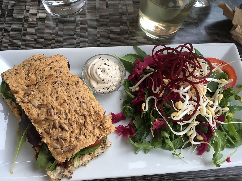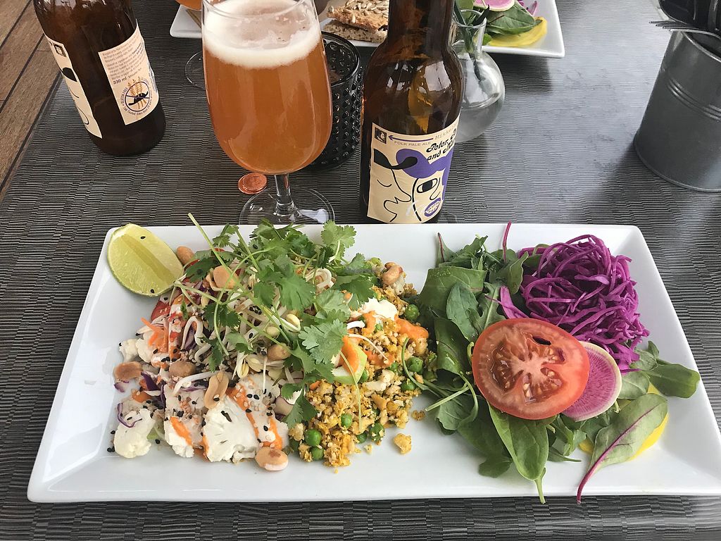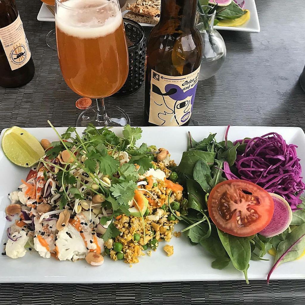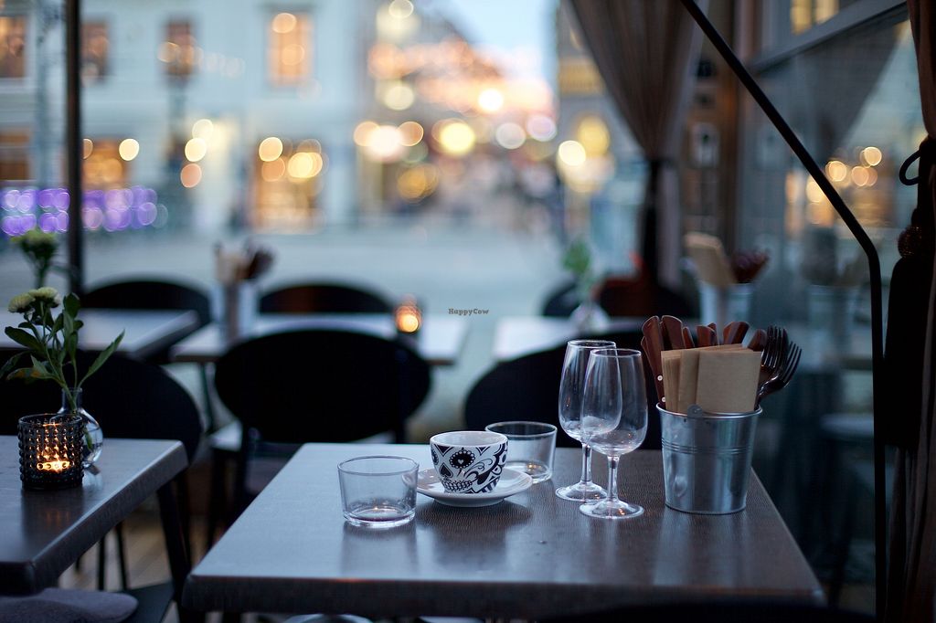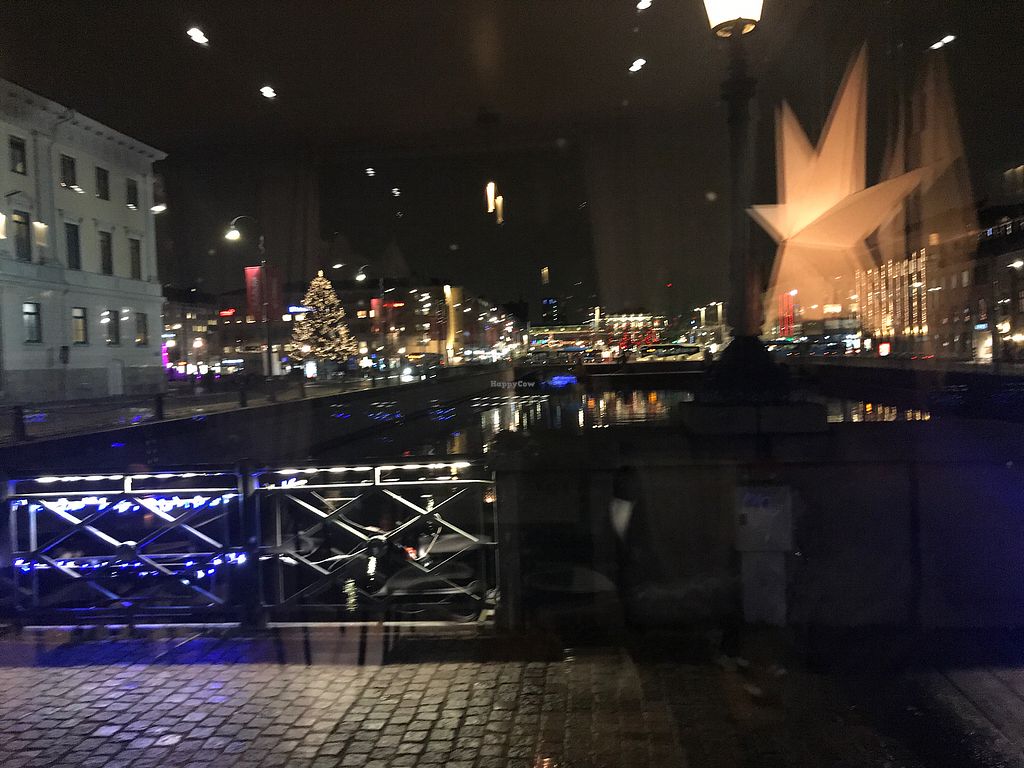This restaurant is a pleasure to visit, it is small and simple, beautifully located in a glass box on the bridge Tyska bron. The house wine is very good and the plate I had very spicy and well prepared: French casserole of root vegetables and cream, with a tasty salad and bread with seeds. Not raw but other dishes were. Very good value for money.