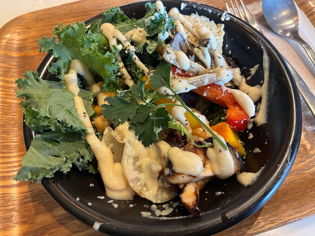 Winter grilled vegetable salad with white miso ginger dressing