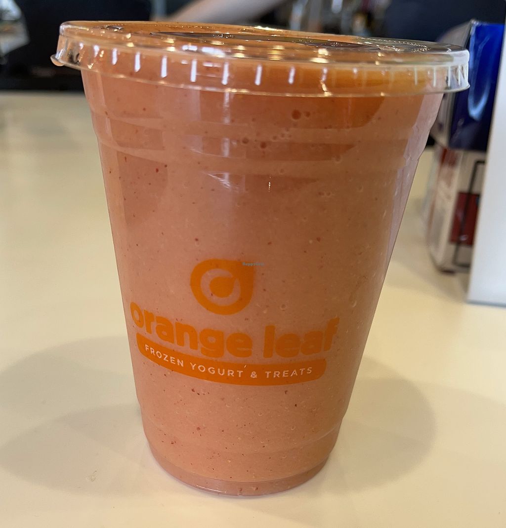 I am an Orange Leaf fan. I always find them in cities with little to no vegan options, so it’s the perfect place to get vegan soft serve. This location had two vegan options when I went, a cherry and a pineapple. You can also swirl the 2 flavors.