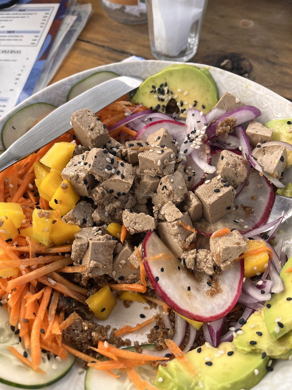 I tried the Buddha bowl, a poke with tofu, quinoa, avacoado, mango and vegetables, and it was really good. Tofu was well seasoned.