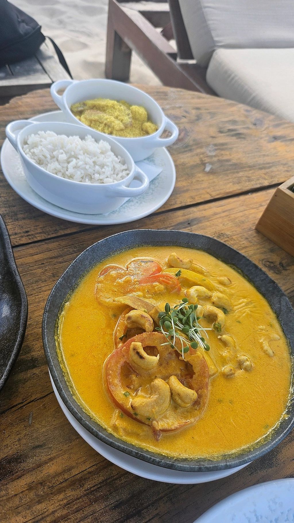 Nice and fancy restaurant, right at the beach. They have clearly marked vegan dishes, I liked the moqueca de banana and the vegan burger. The menu lacks vegan protein, they have a vegan bean soup (caldo de feijao) though.