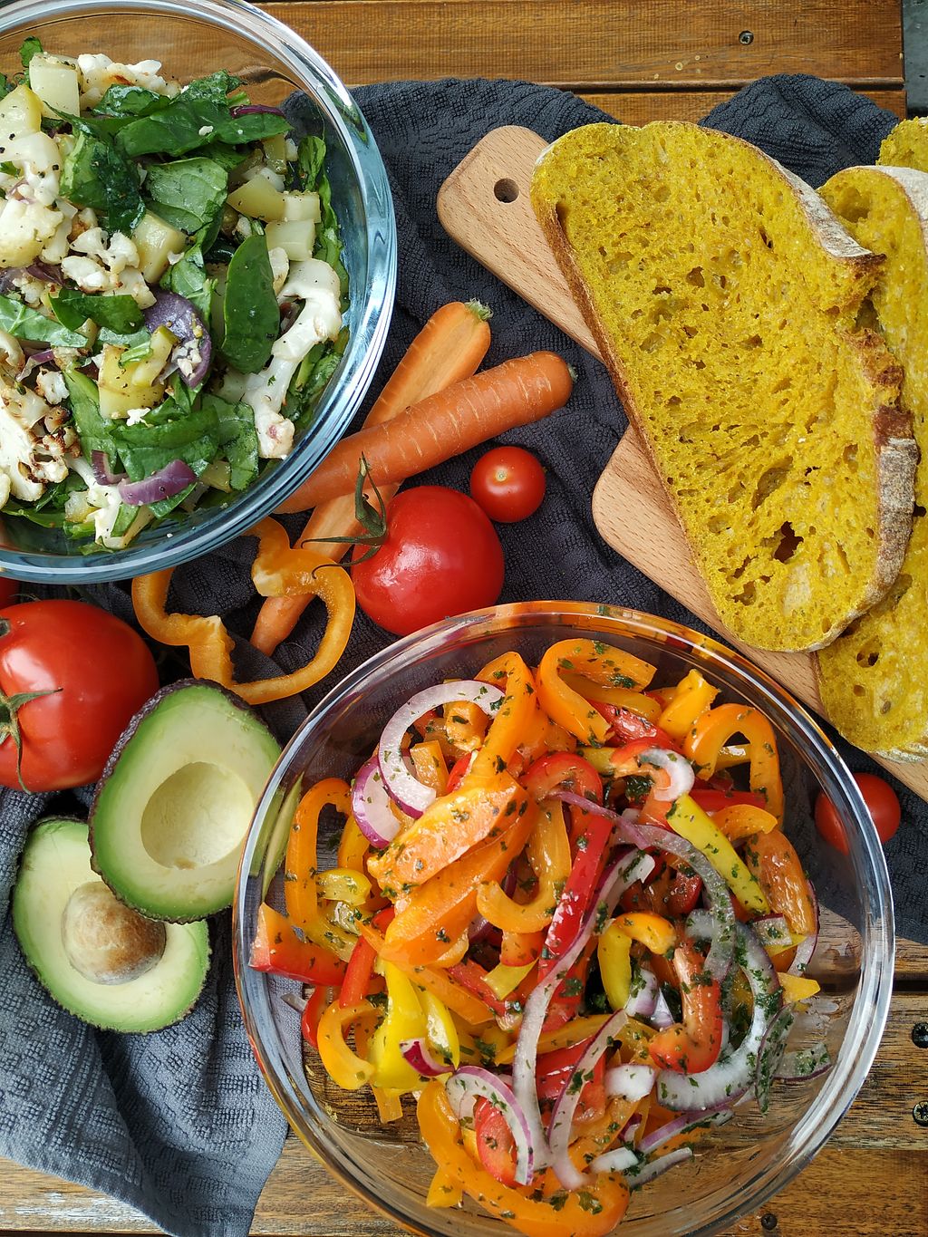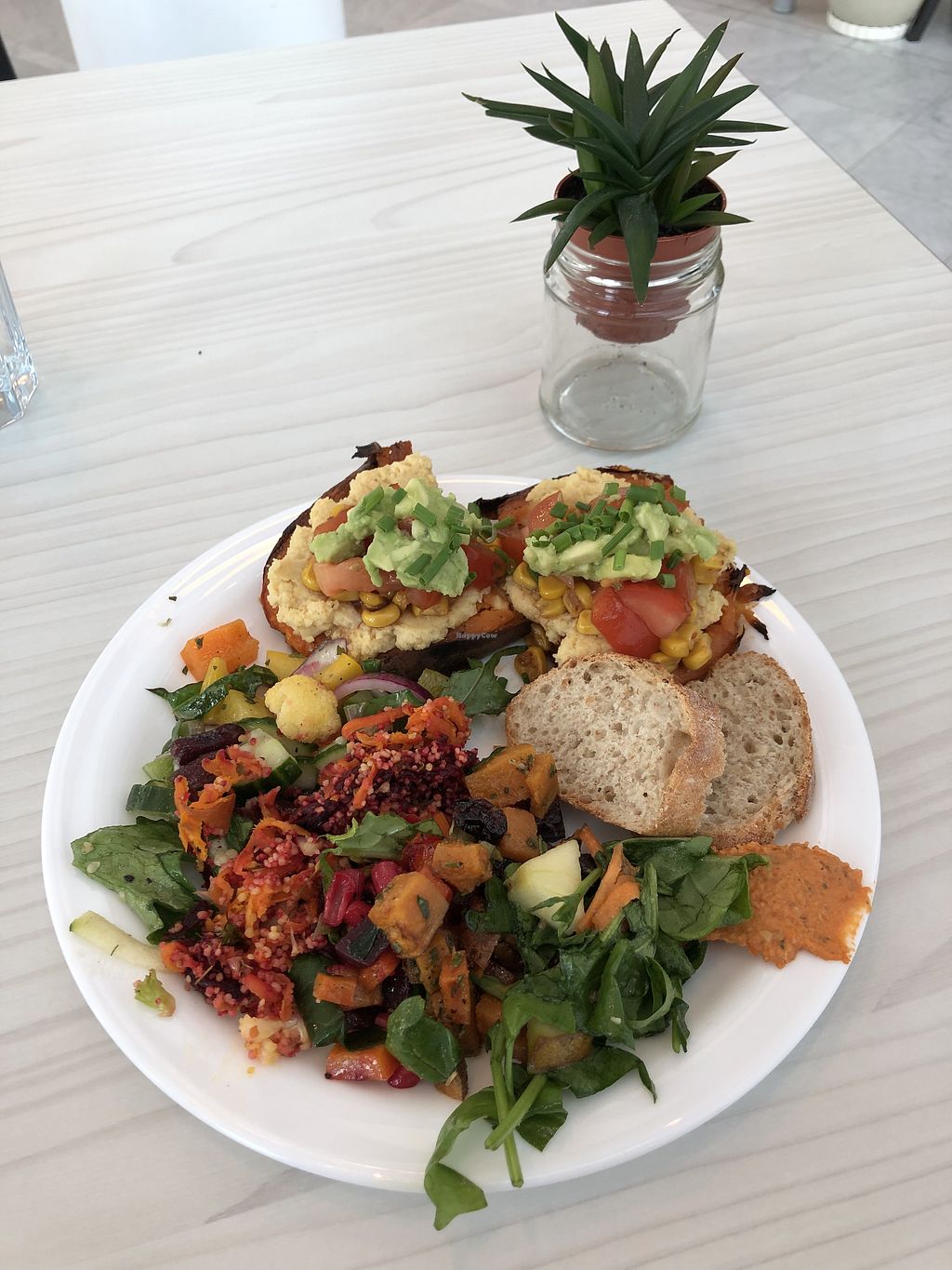 Rainbow open sandwich with beetroot hummus, tomatoes, avocado and rock…