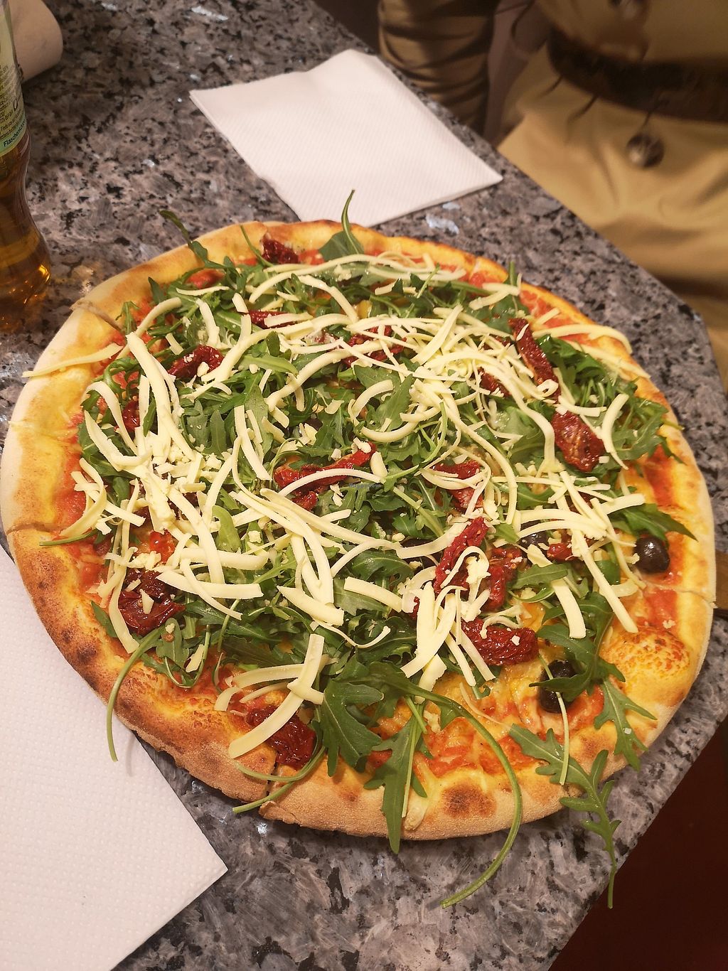 Pizza Vegetaria (mit Brokkoli, roten Zwiebeln, Olivenmix & Champignons…