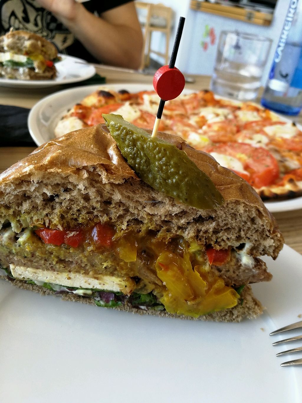 For lunch or dinner we had salad, hummus dish, tabouleh dish, filled mushrooms, pizza and hot dog. We were confused if the pesto pasta was vegan or not. Pizza was very good and simple (just tomato and a bit of vegan cheese) and at 5-7 pm you get two for price of one. Hummus and tabouleh dishes and filled mushrooms were a bit expensive because the portions were not that big. My hot dog was great and included guacamole and mustard mayo. Salad with tofu was good too.