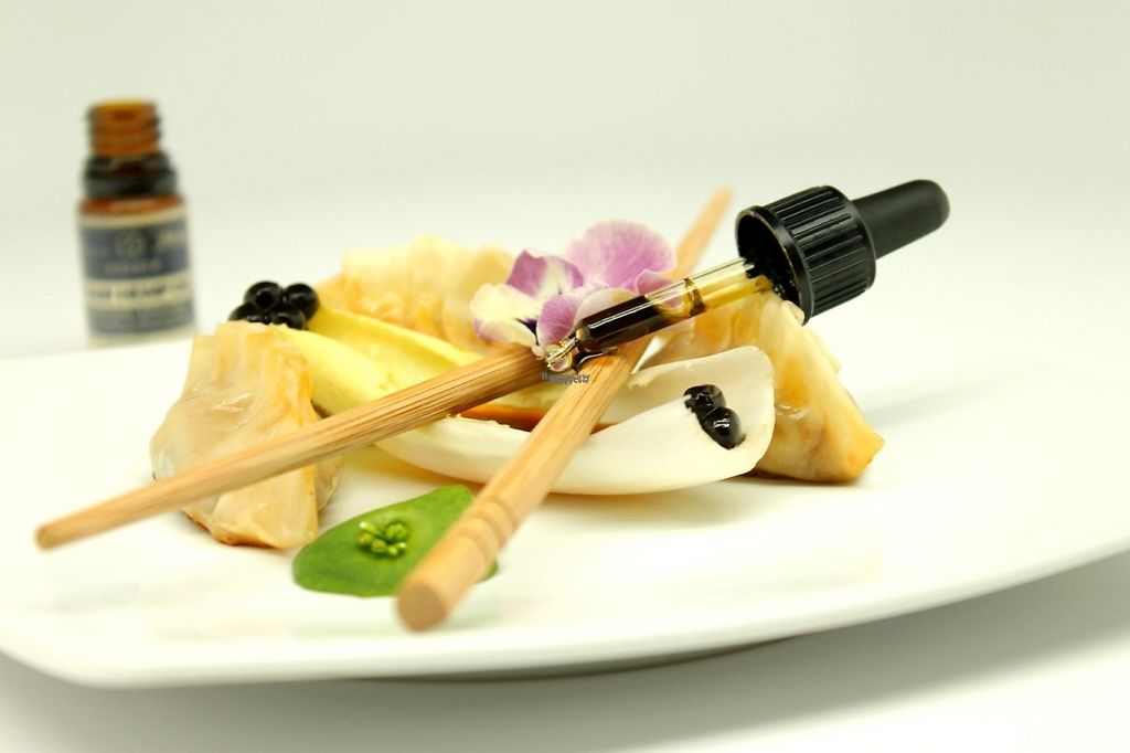 Vegan Spicy Chinese Dumplings with Caviar and CBD cannabis Sauce