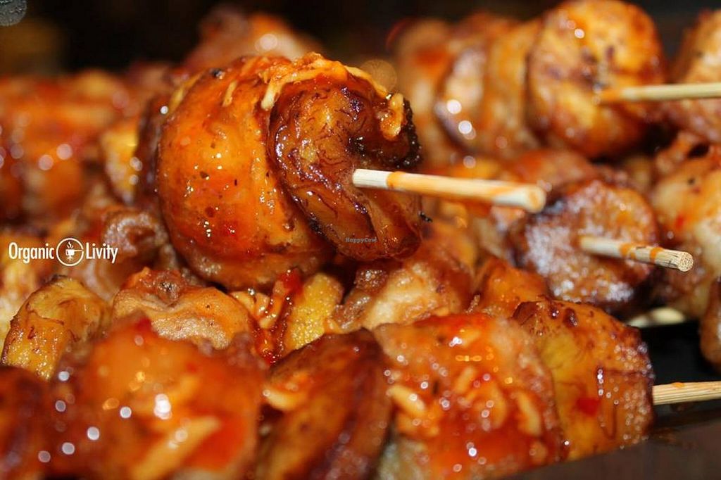 Pop up Restaurant Organic Battered Tofu and Plantain Skewer with Ging…