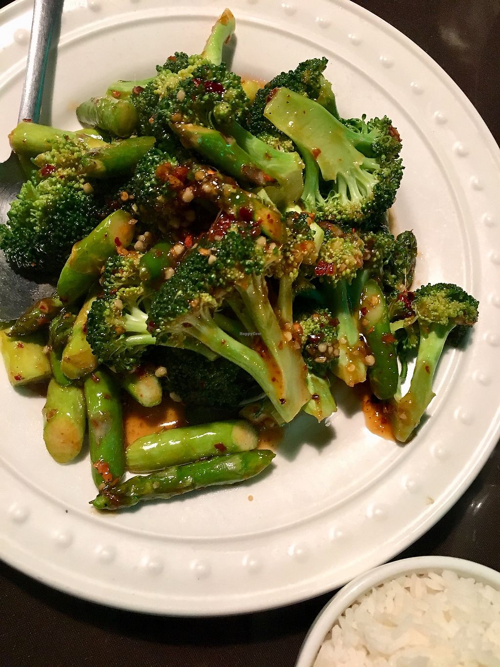 I went here for years and never knew they had a separate vegan/vegetarian menu but when asked I was pleased to see the variety of choices including three soups, several appetizers and at least 20 main dishes. I got the pot stickers and garlic, broccoli, tofu with rice. It was excellent and portions were large. I payed $25 though which seems like a lot.
