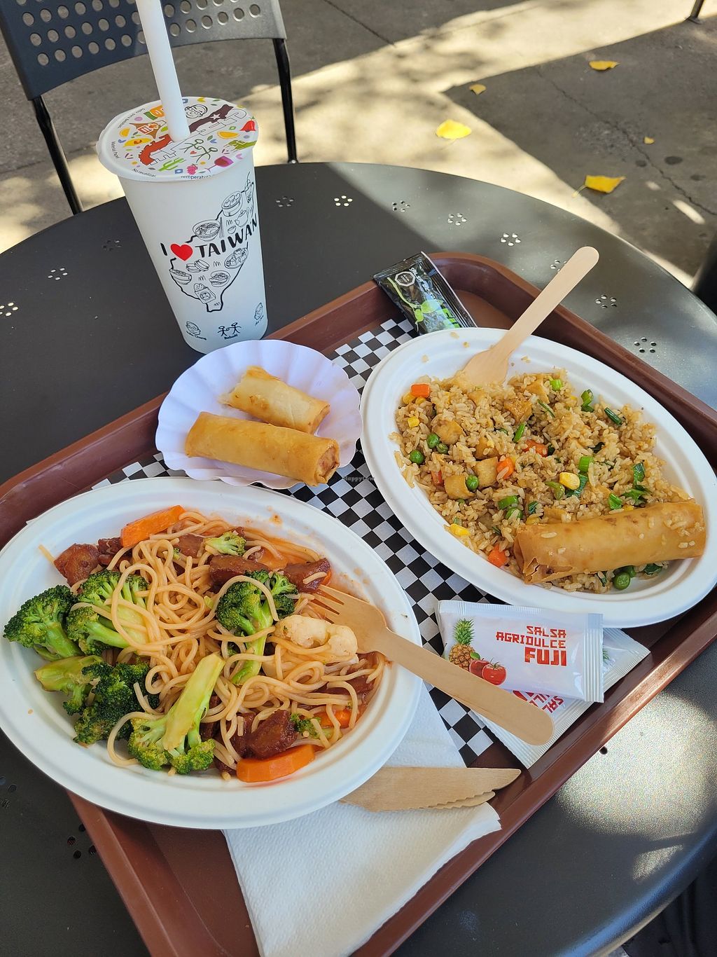 Arroz chaufa y fideos con chikin agridulce
