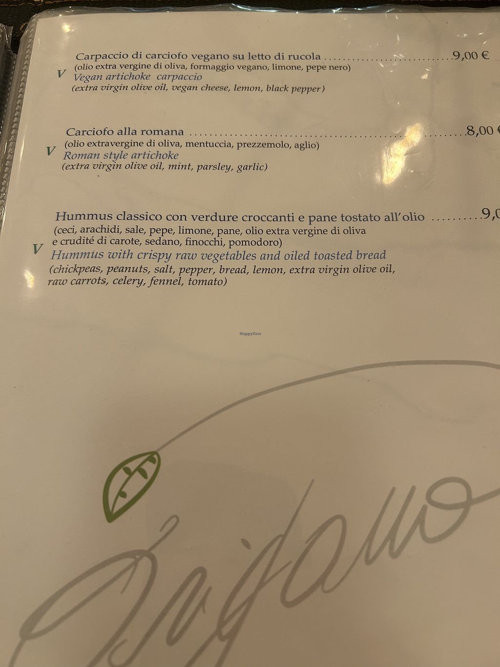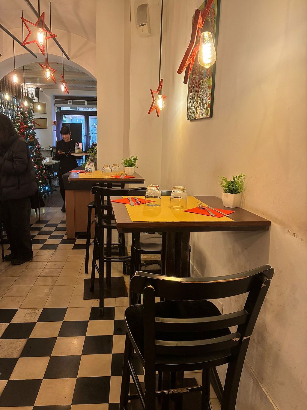 Had a Hugo spritz and the cacio e pepe vegan and gf, it was delicious and just what I needed. They couldn’t put the fried artichokes in the cacio e pepe because of cross contamination with gluten fryer but the attention to that alone was much appreciated. Would love to make it back here before I leave Rome. I’d give five stars but Happy Cow won’t let me. Servers are very knowledgeable of the menu. Also got the artichoke carpaccio which was really refreshing and delicious. I will note that I was given ten euros short of change (I paid with a hundred, bill was 34, she gave me 56 back instead of 66) and I only noticed when I walked out. I went back in and she gave me the 10 euros back. It could have been an honest mistake so just double check that you’re getting the right change back when paying cash.