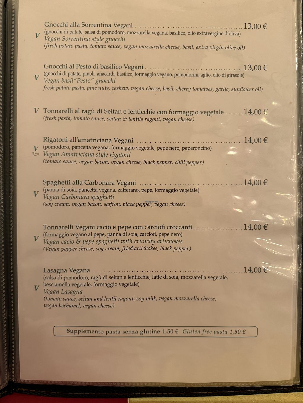 Ate here twice on a recent visit to Rome and even though I chose different items each time, there were still plenty of other vegan options on the menu that looked equally as tempting. Difficult to pick favourites but the suppli, pesto gnocchi and lasagna were all excellent. Friendly and attentive staff, especially the lovely Julia who looked after us well from start to finish. Only able to give four stars on Happy Cow, given that the restaurant also serves meat, but certainly a five star experience