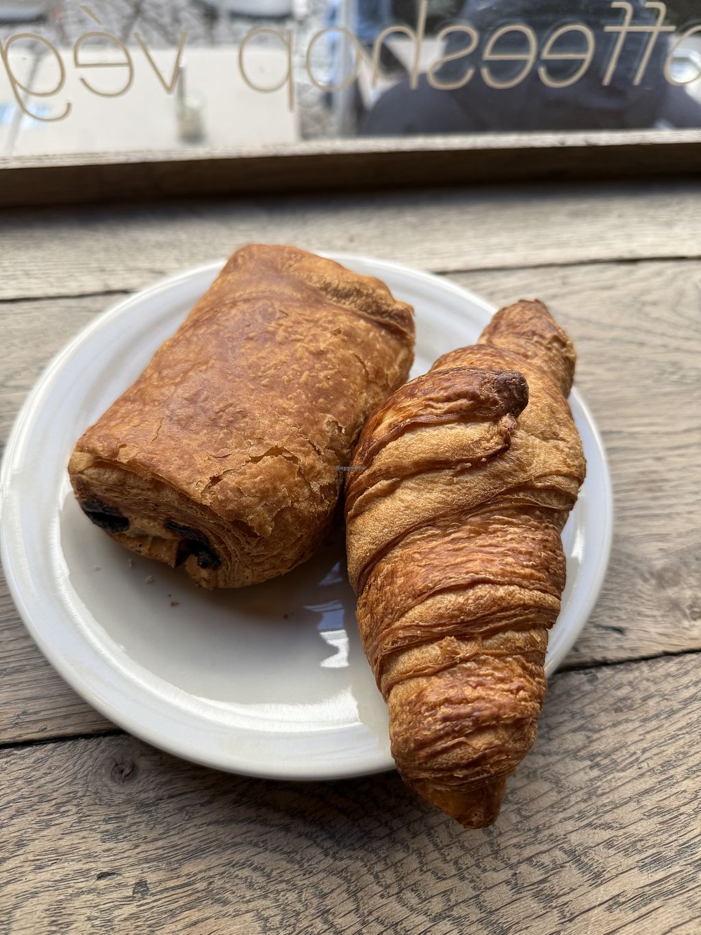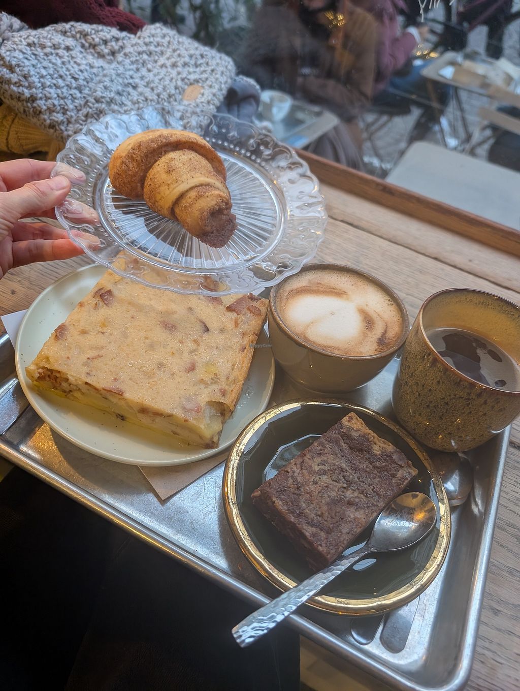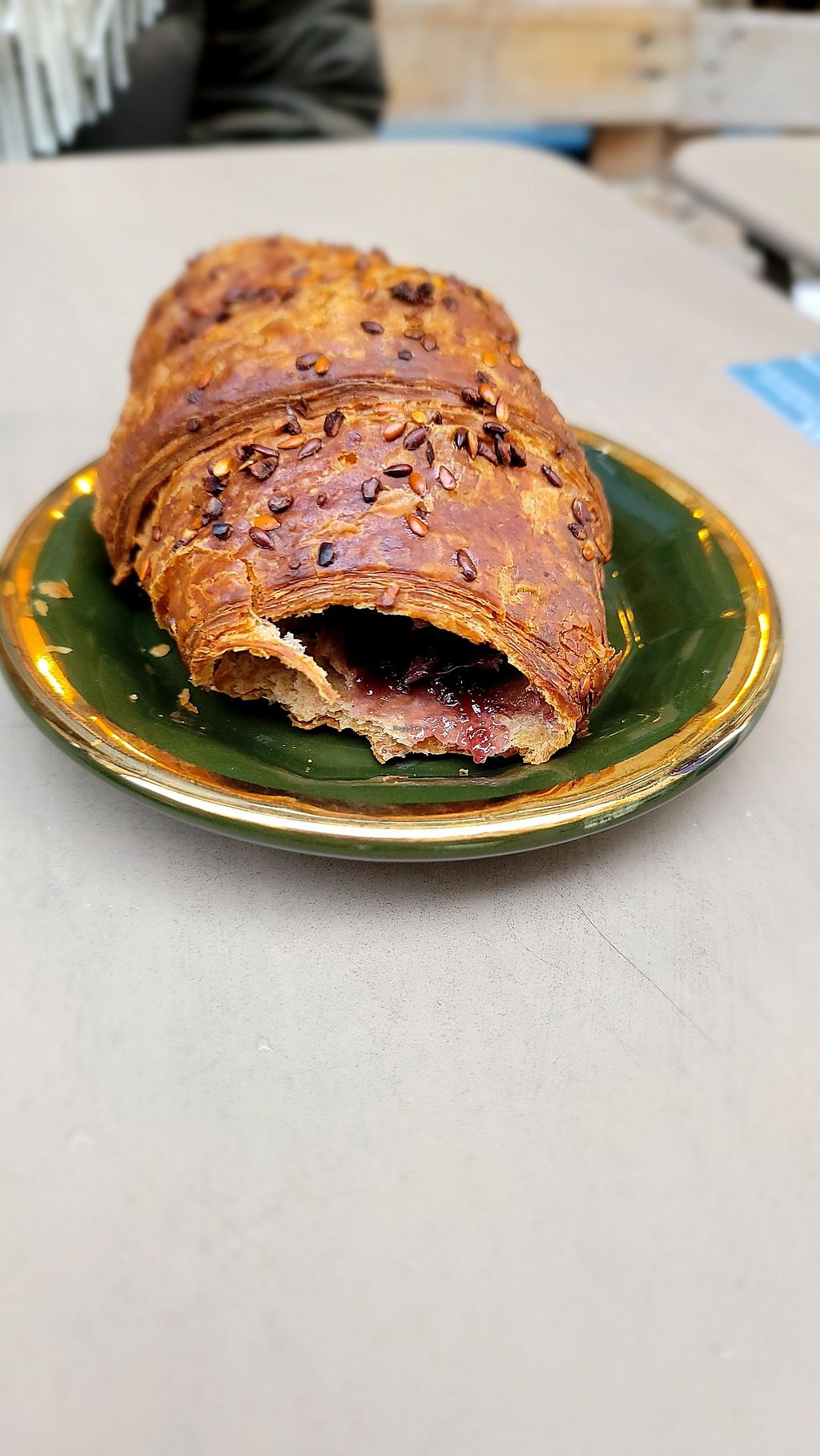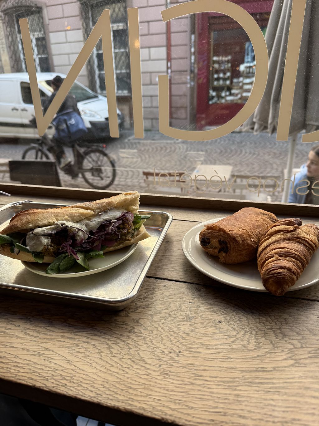 3 sandwichs différents, un croissant fourré chocolat, cinnamon roll, t…