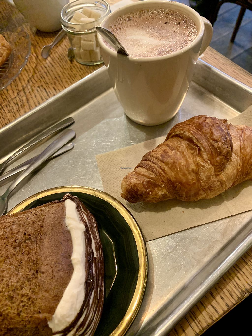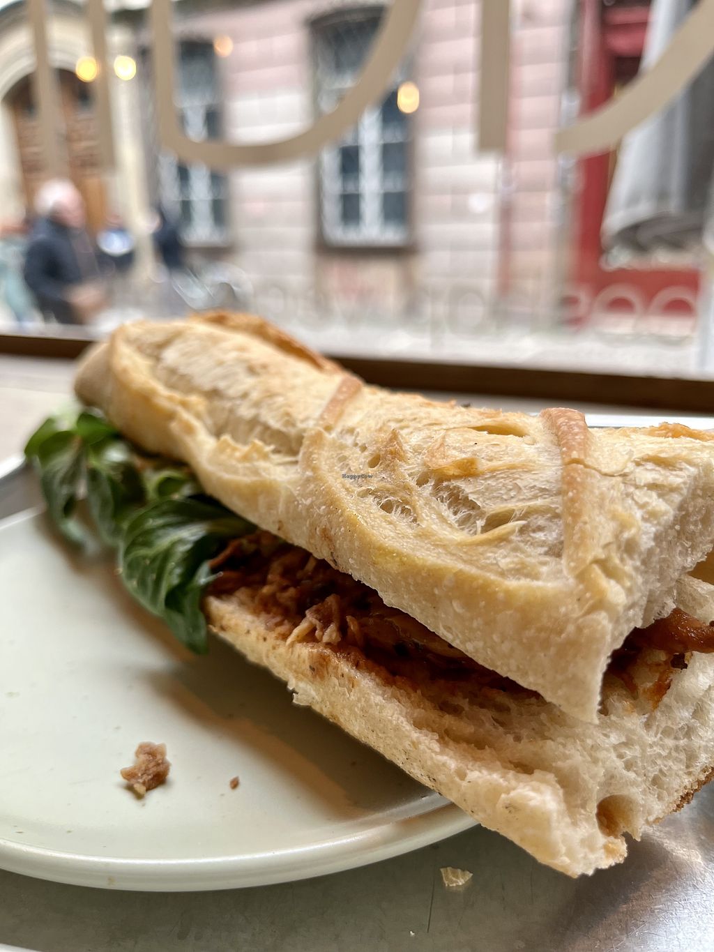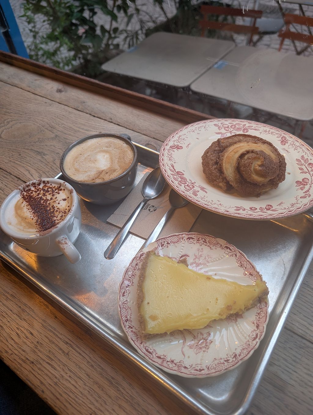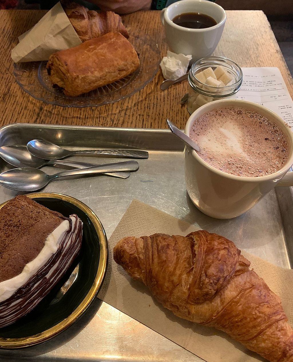 3 sandwichs différents, un croissant fourré chocolat, cinnamon roll, t…