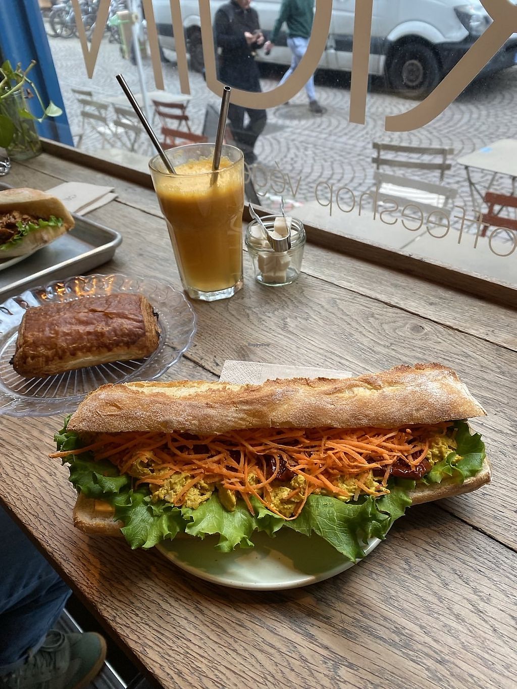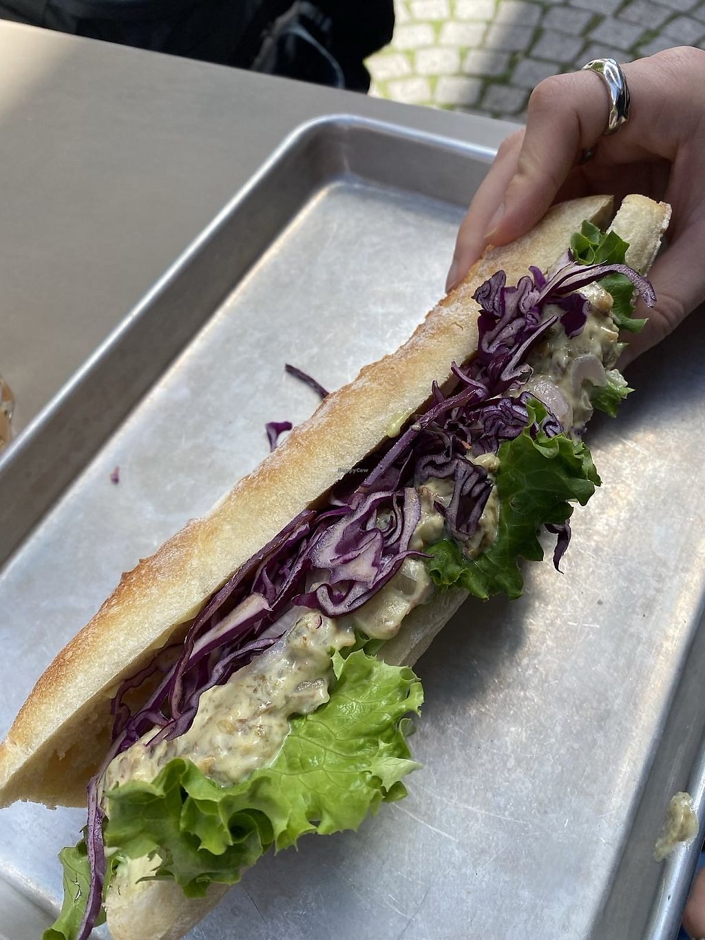 Panino con harissa, lattuga, cipolle caramellate, cavolo viola e feta …