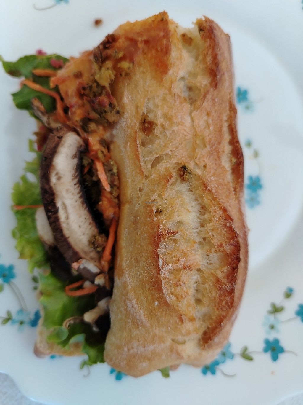 Baguette con hummus alla barbabietola, lattuga, carote julienne, fungh…
