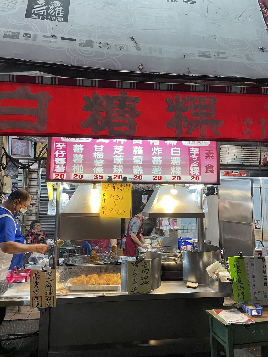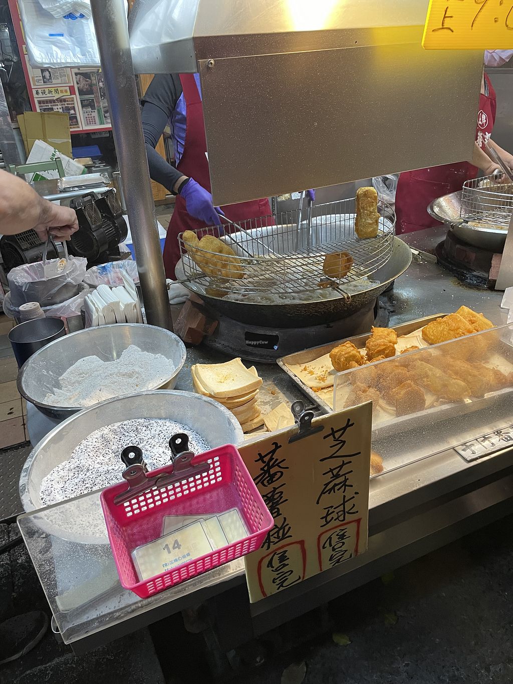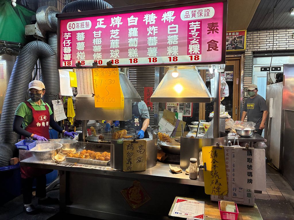 Fully vegan food stall in the Ziqiang Night Market selling fried sweet and savory items. Signature fried rice cake rolled in your choice of peanut or sesame powder, taro cake, fried sweet potato balls, fried sweet potato in plum powder, fried taro in sweet potato, sesame balls, and fried turnip cake. Open Tue-Sun 1:30pm-9:00pm.