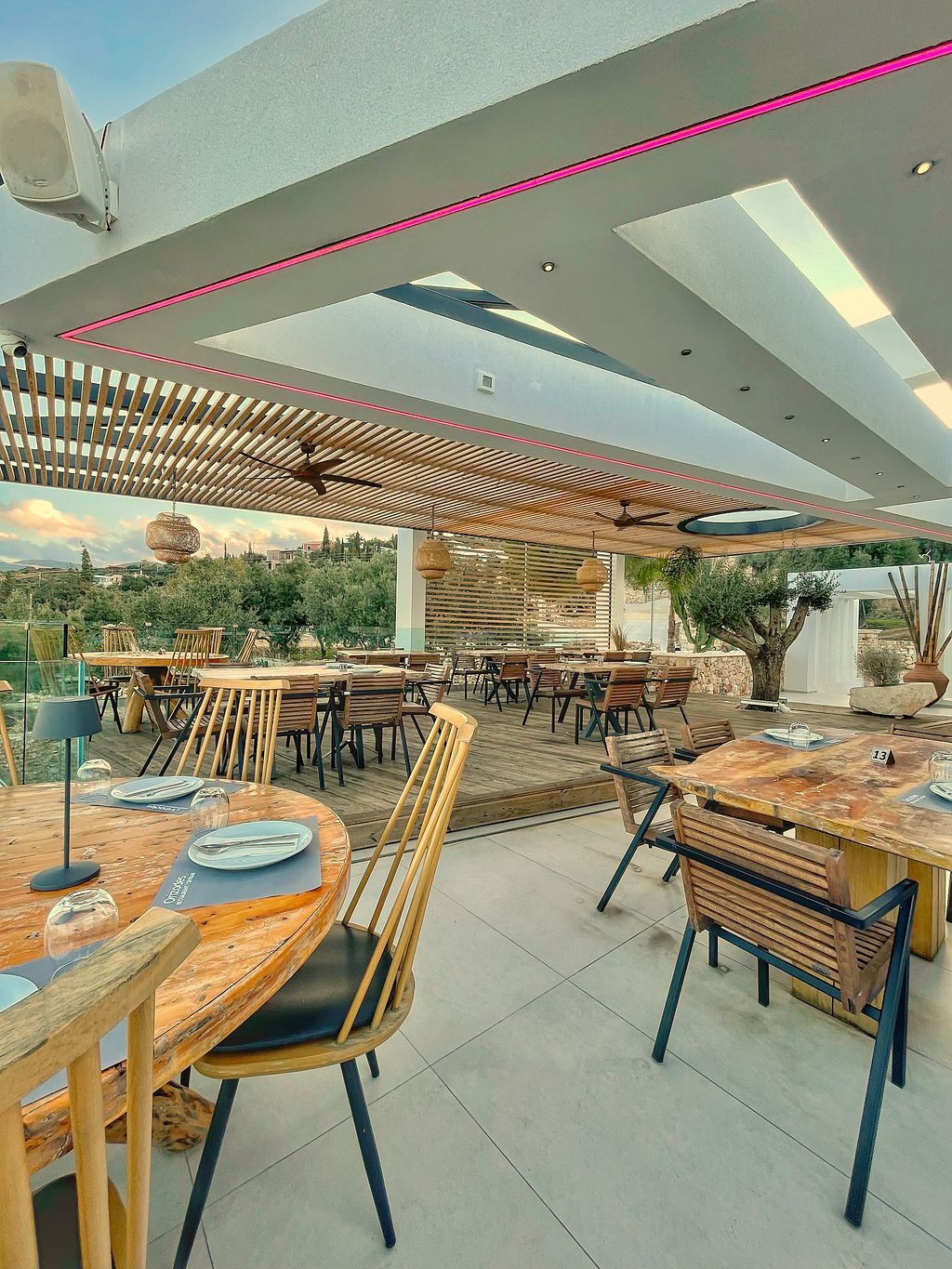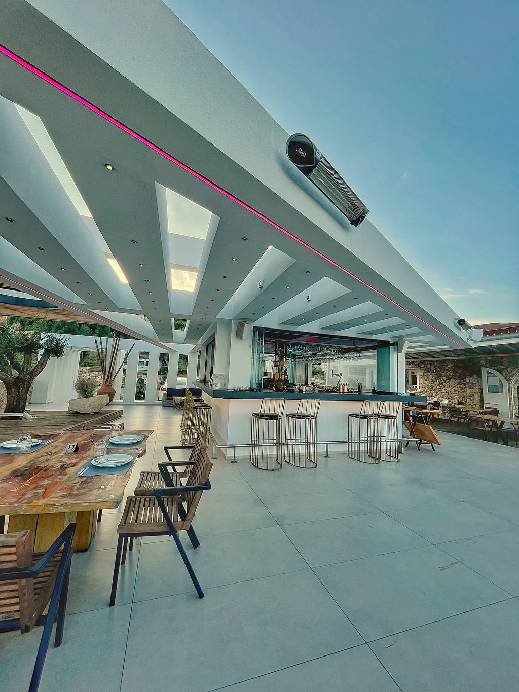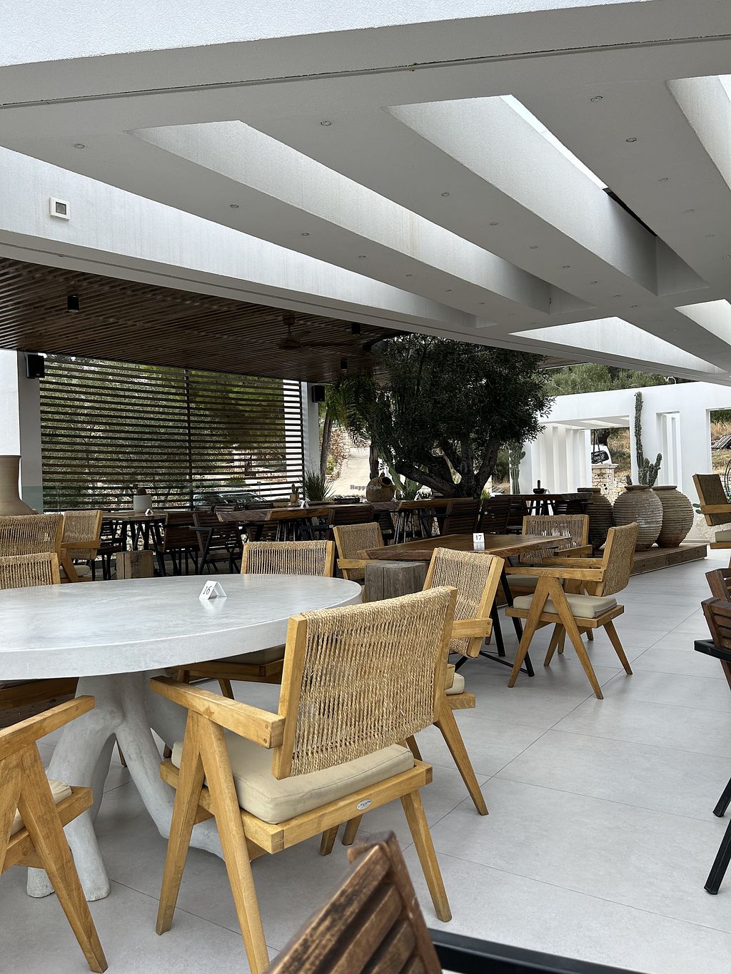 A very elegant place with a beautiful view. And that's the biggest advantage, because the menu offers nothing special. The food is tasty, but for me it is important that the meal contains protein and is varied. I ate a burger because it seemed to be the most filling meal. And it disappointed me a bit that hummus and (I think) pesto are both burger sauce and fries sauce. The bun, on the other hand, seems to be a supermarket bun. I do not discourage you from visiting this place, because there is no other place in the area. But there's really nothing to go there. Prices very high too - a bottle of water for 6 euros!