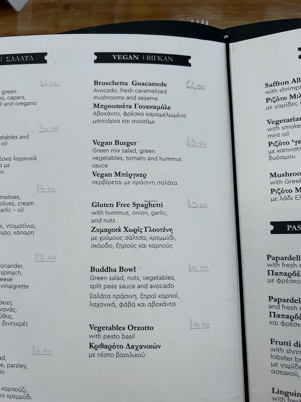 They have a seperate „Vegan“ section in their menu, but be careful though, I‘m not sure if everything is 100% vegan, I ordered the Vegetable Orzotto and I‘m pretty sure there was cheese (parmesan) in it. When we arrived there were no other guests apart from us, later a group of tourists came. They got another menu with fewer options?