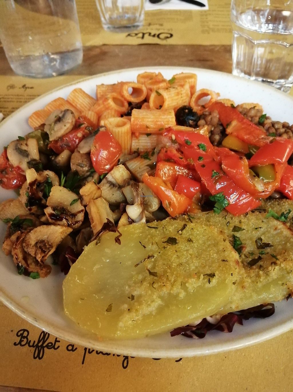 Came here twice and had the unlimited buffet. Buffet options are amazing and it costs €9 with water included. Options included salads, a grain (e.g. couscous/farro), a pasta/parmigiani etc. You may need to ask them to heat your buffet food. Service is good and the restaurant has good vibes.