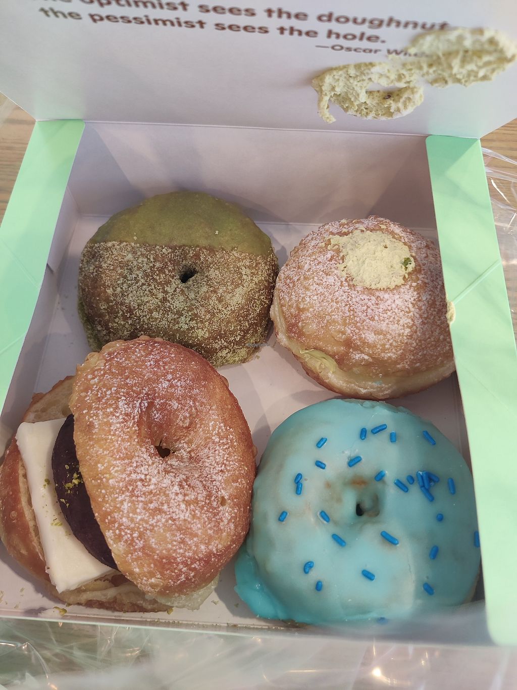 Oscar wilde is a little kiosk but have a good selection of delicious donuts and beverages. The donuts are a combination of old fashioned style and raised. I loved the filling inside the pistachio donut.