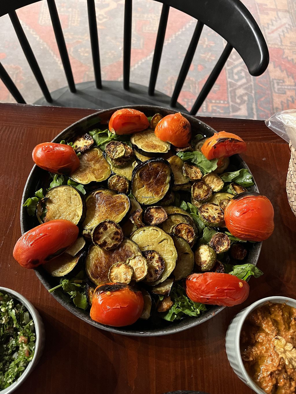 Serves meat, vegan options available. Restaurant serving Middle Eastern food. Offers clearly marked vegan dishes such as lentil soup, grilled vegetables, side salads, hummus, samosas and more. Open Mon-Sun 1:00pm-1:00am.