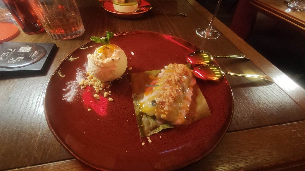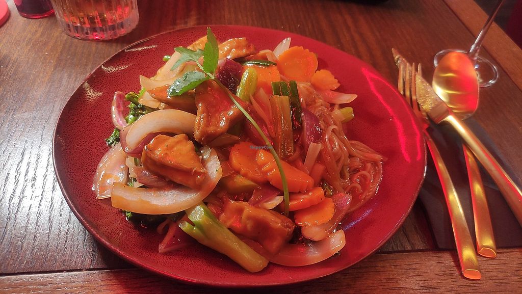 Serves meat, vegan options available. Thai restaurant offering vegan-friendly dishes such as “Fried Tao Hoo” (tofu appetizer), Pad See Ew noodles with tofu, and Thai banana dessert. Open Mon-Thu 12:00-23:00, Fri-Sat 12:00-00:00, Sun 13:00-23:00.