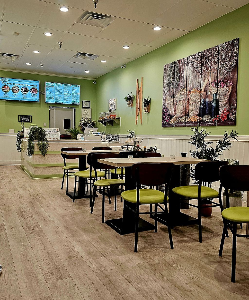 Pros: Vegan and fresh + compostable containers , Friendly staff , Plenty of parking 🅿️