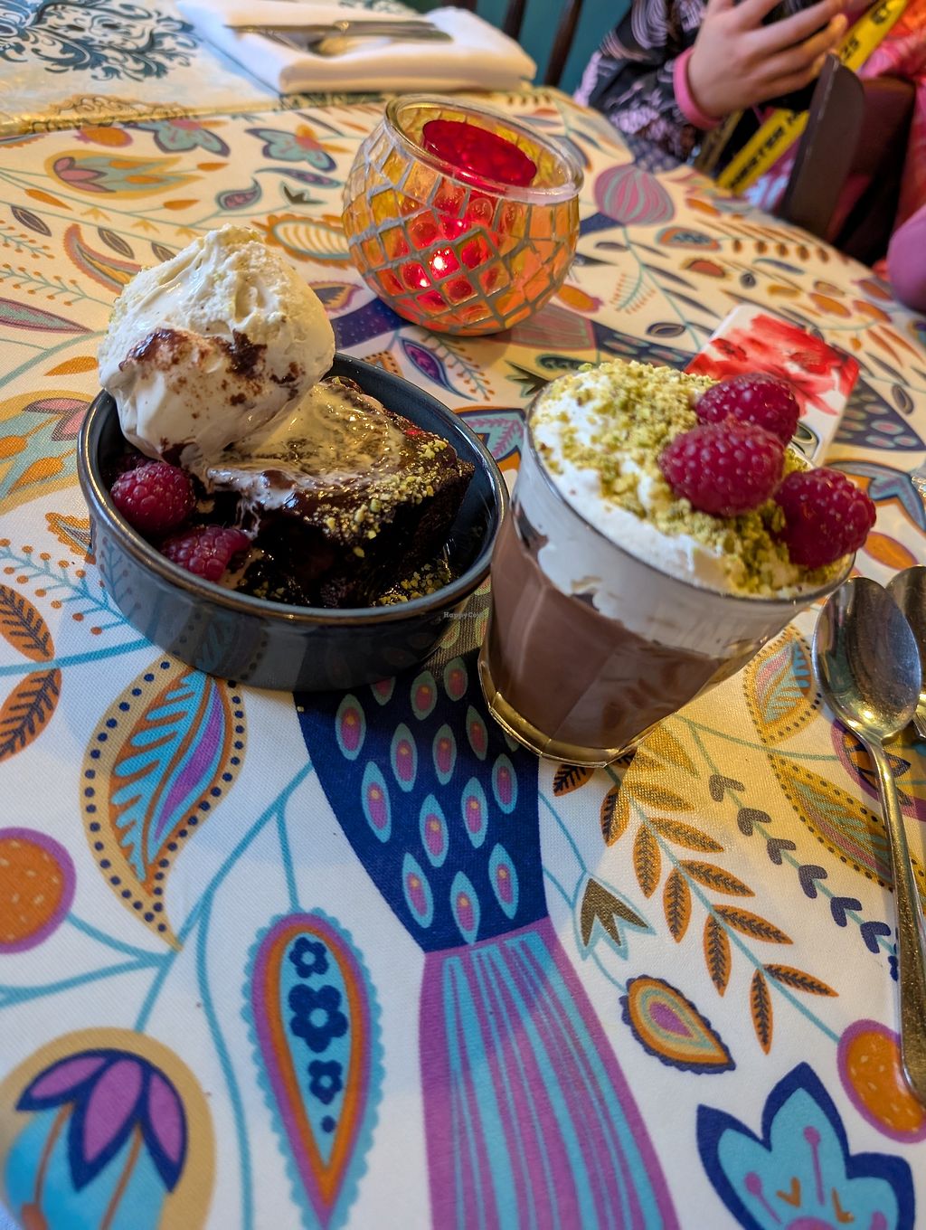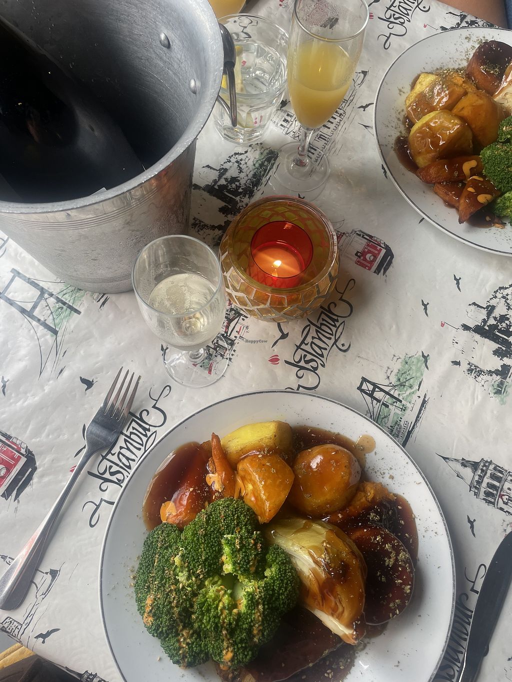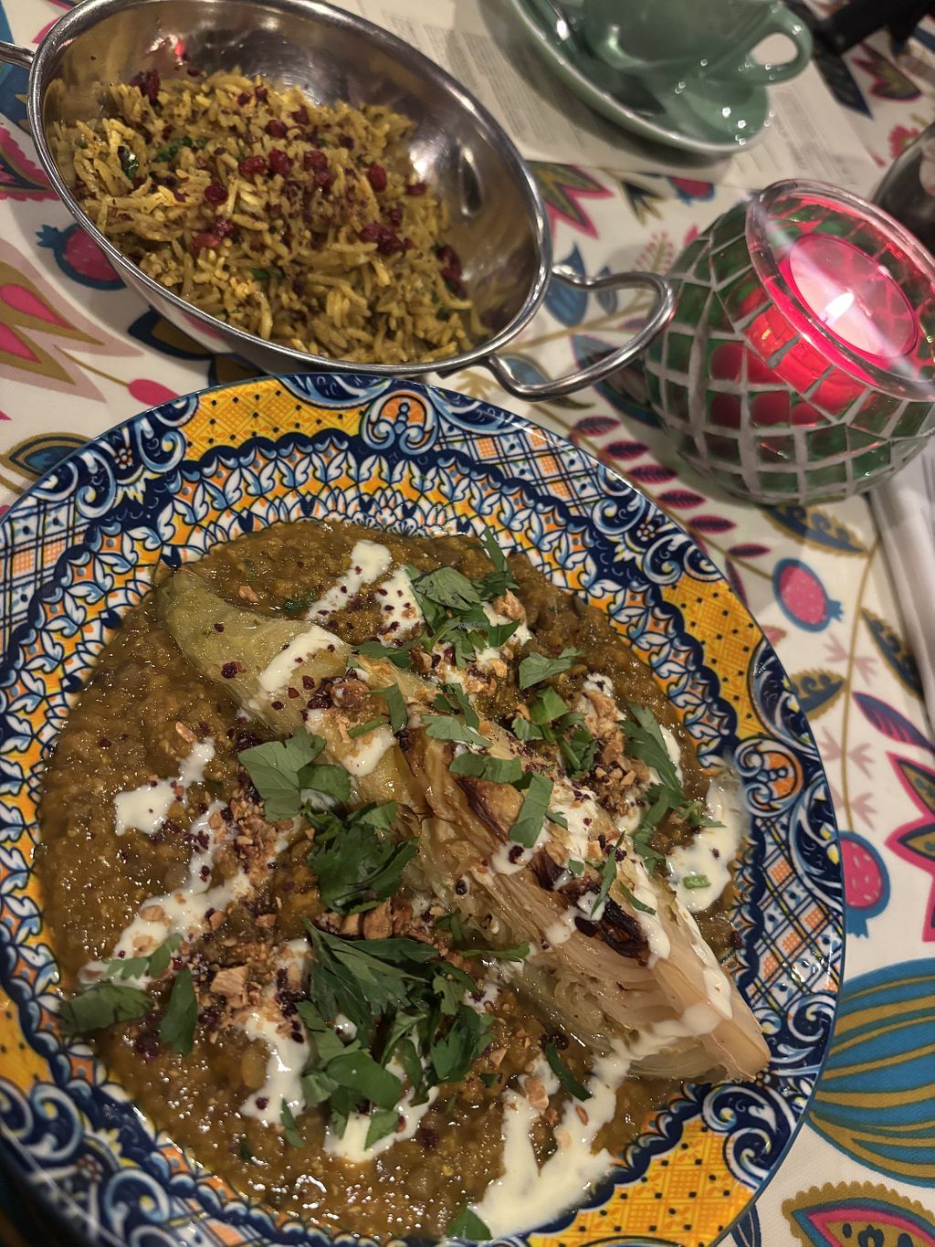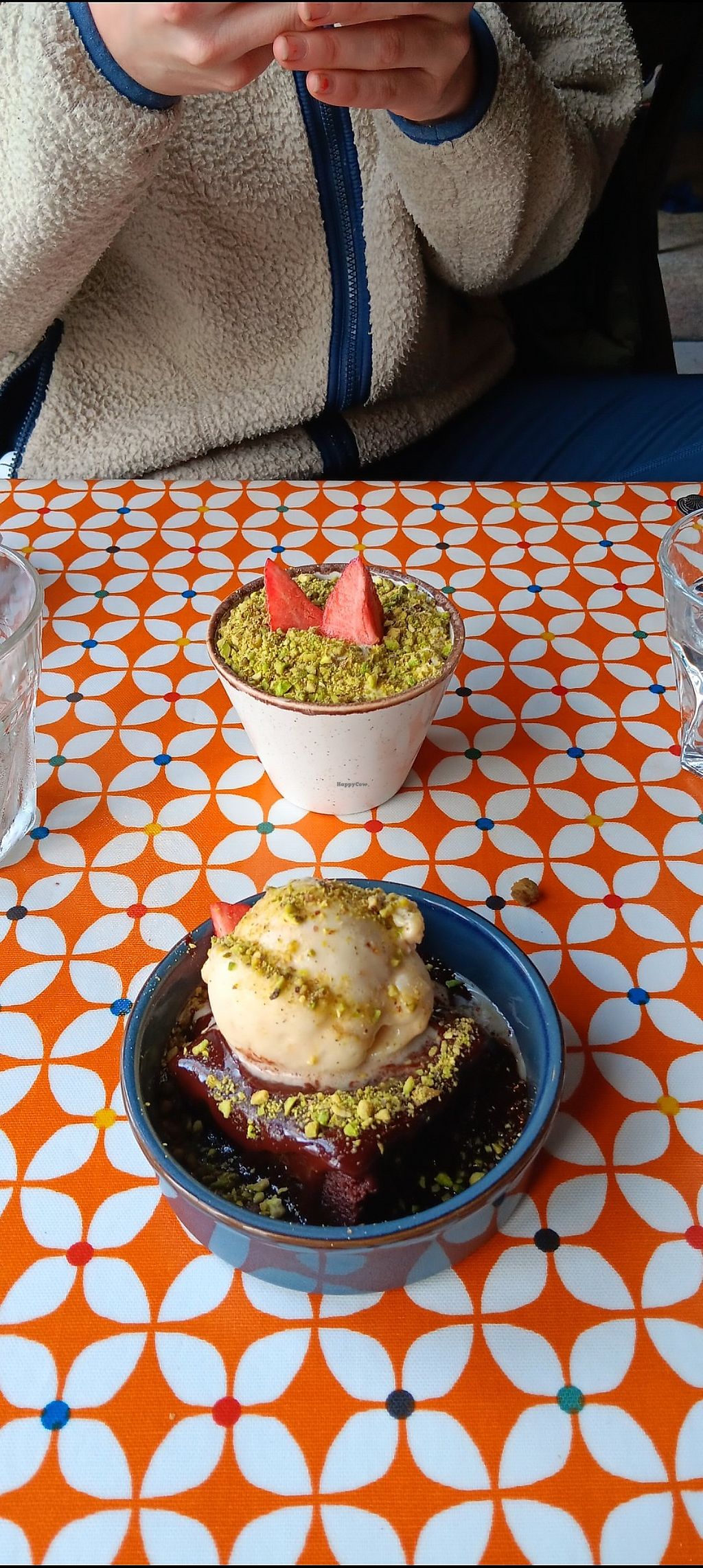 Had the mezze platter to start, with kebab for main, which was beyond meat crafted on the spit (pictured). The desserts were otherworldly, with a sweet potato chocolate mousse with cream and pistachio topping, and a Supangle chocolate cake with ice cream. 100% vegan will be going again as the menu is big! #Veganuary