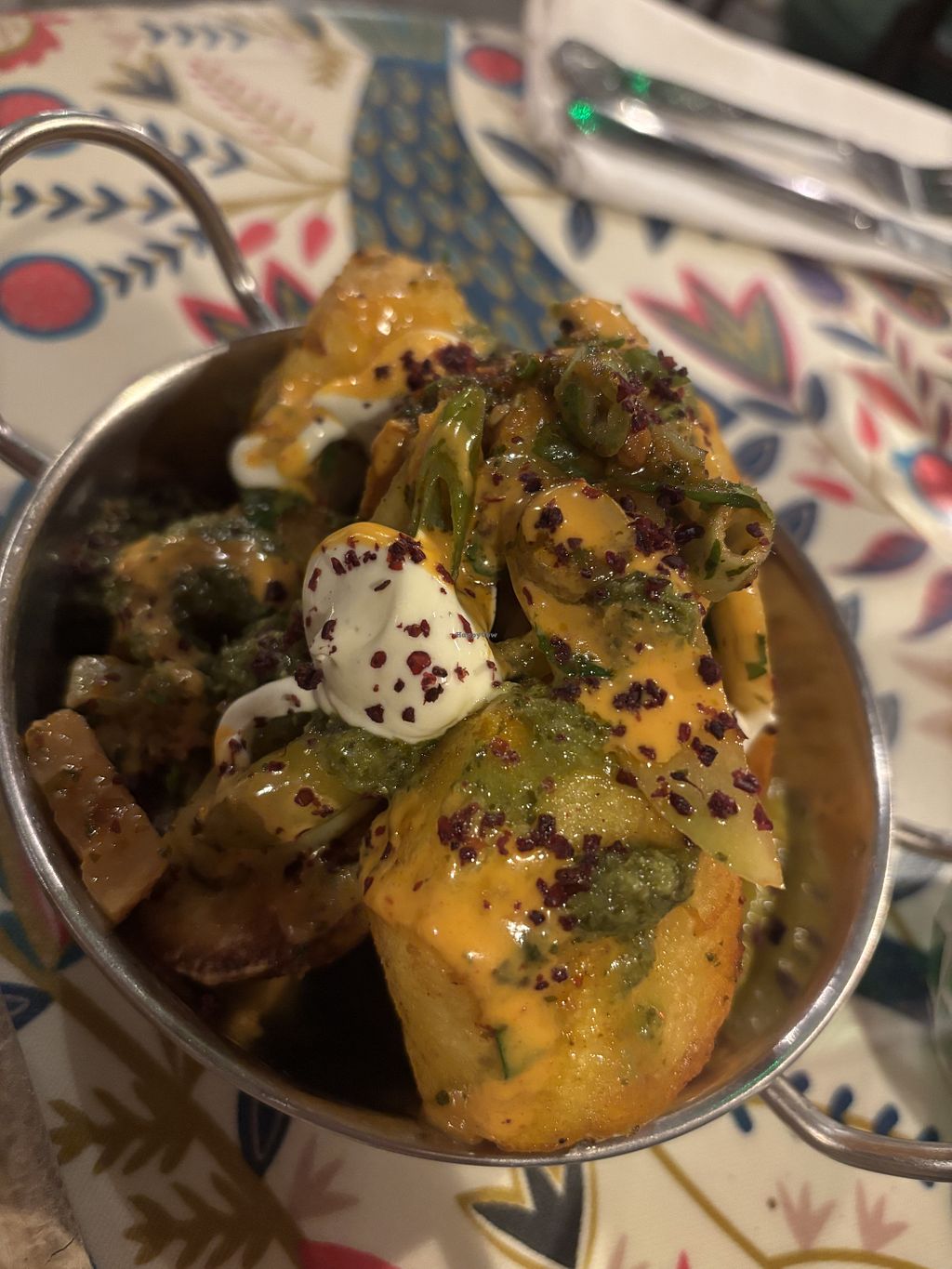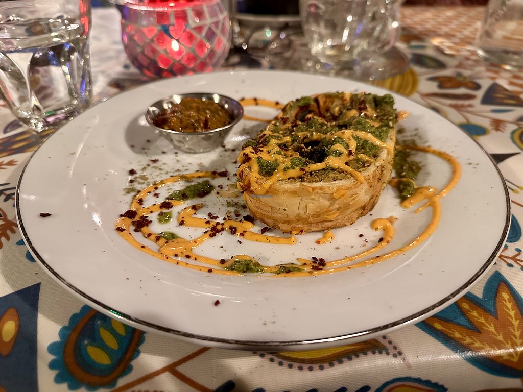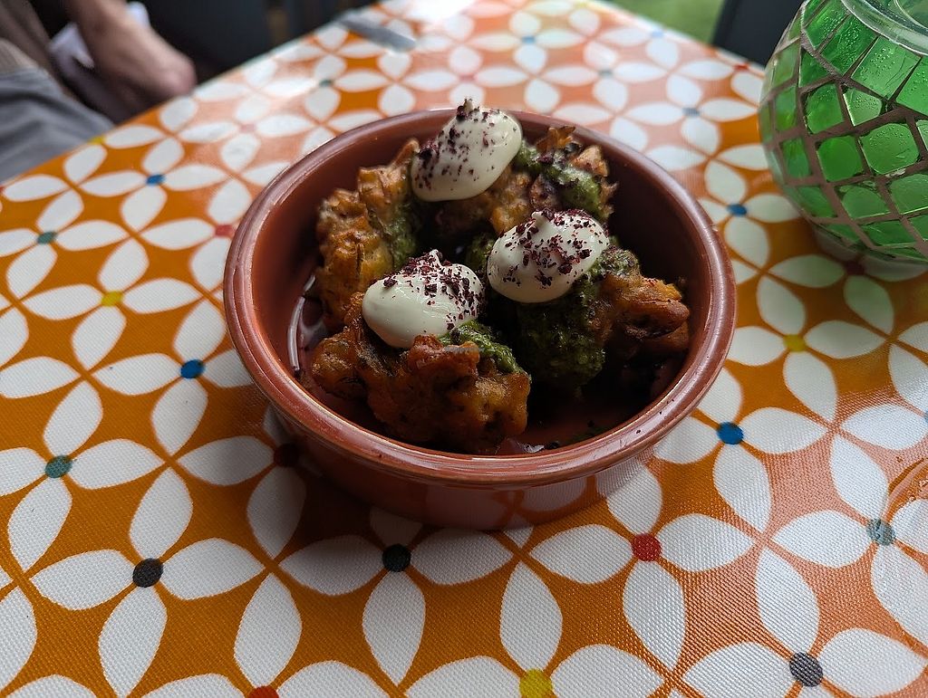 Decided to pop in here after reading all the great reviews. We certainly weren't disappointed. Easy to find up the colourful steps at the side of a pub. Lovely decor and a warm welcome. We tried a mixture of the small plates and bread and dips. Everything was delicious, lots of smokey and spicy flavours. Funky music playing, which added to the ambience. Food was quick to arrive, so if you want a longer meal stagger your order.