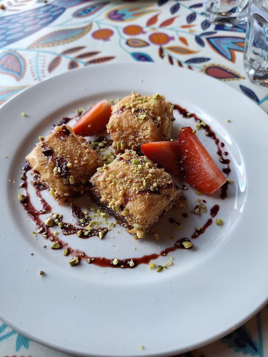 Wide-ranging menu and lots of nice flavours. The dishes we ordered weren't 5 star material (the mezze was small and hit and miss on flavours, the wrap was a bit thrown together). However the service was great and we enjoyed the chocolate desert.