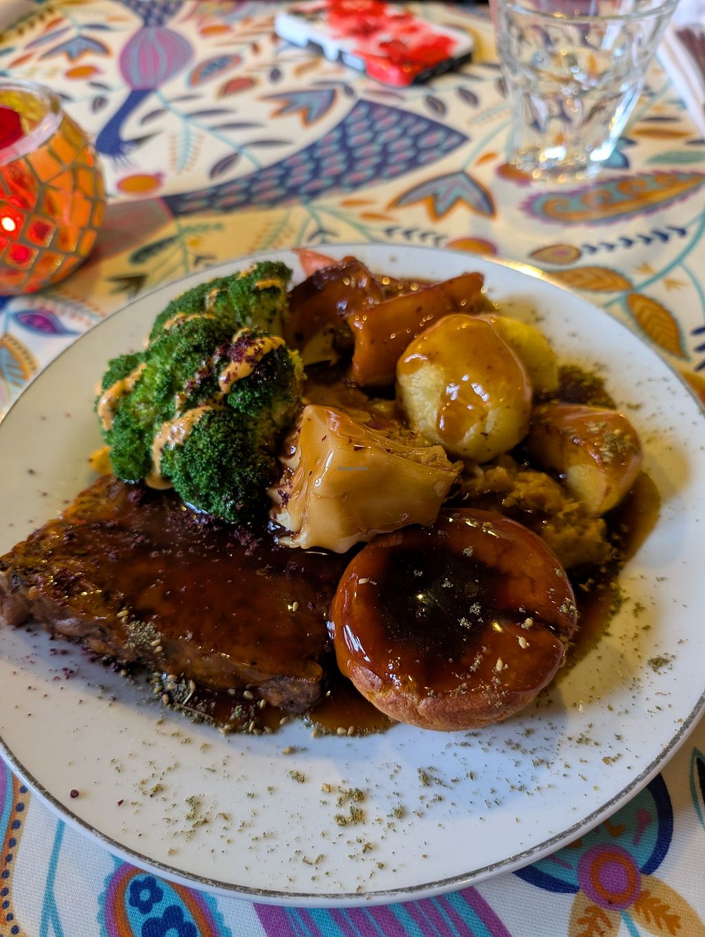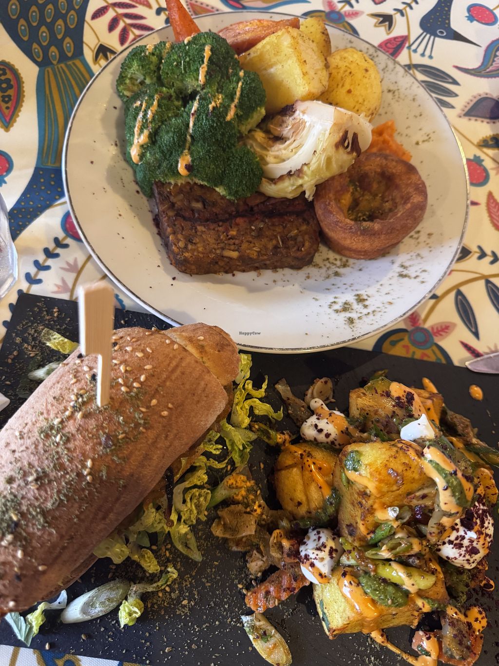 Read moreWe started with the mezze board, which was delicious. The vegan roast was a highlight. The gravy, vegetables, and nut roast were all full of flavour. I was excited to try the vegan Yorkshire puddings, but they were a letdown, with a cakey texture and little flavour.