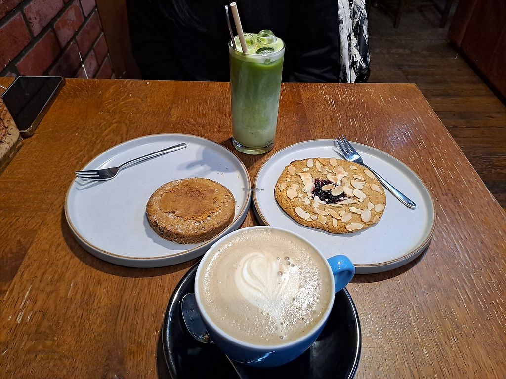 Read moreI had the chickpea shawarma, coconut blueberry cake, and a iced pistachio soy milk Matcha. Everything I had was amazing, and such a amazing atmosphere. It's very busy but also cosy at the same time.