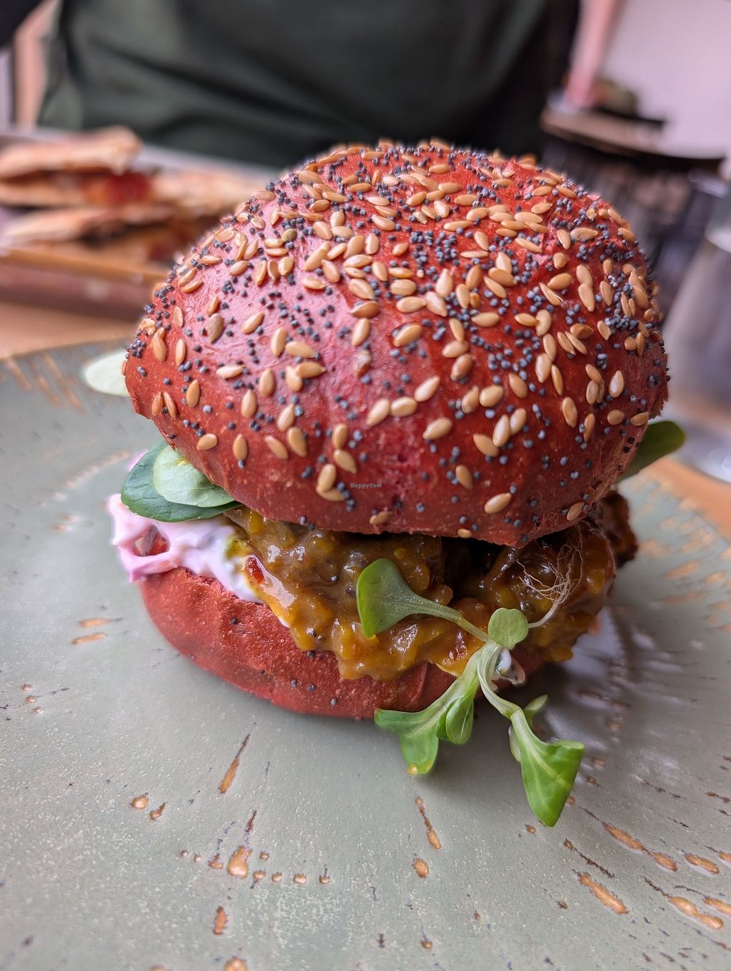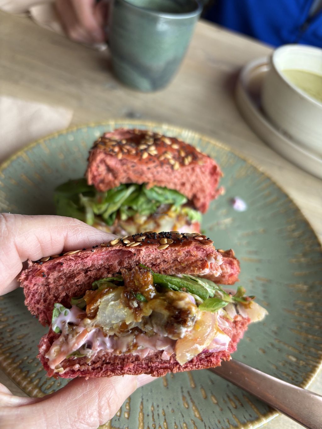 Cauliflower katsu burger on beetroot bread (sweeter than normal bread)…