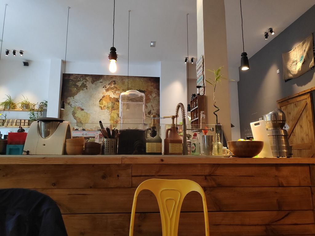 Tostada de aguacate, tostada de hummus, chai latte y batido choco cook…