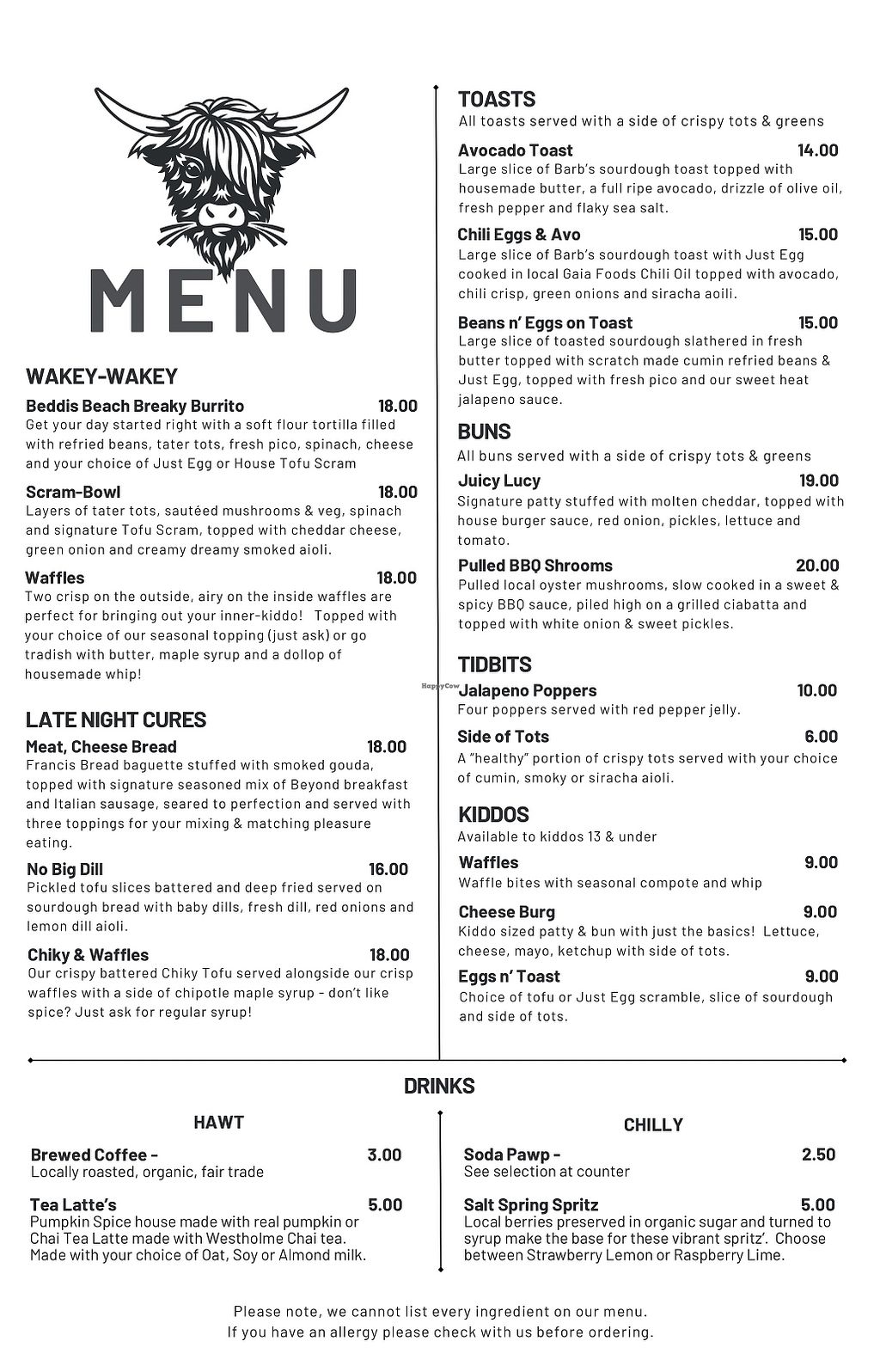 Menu as of writing of this review