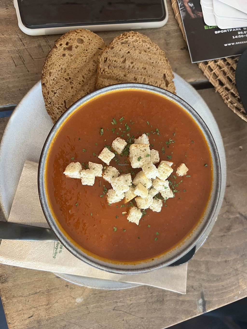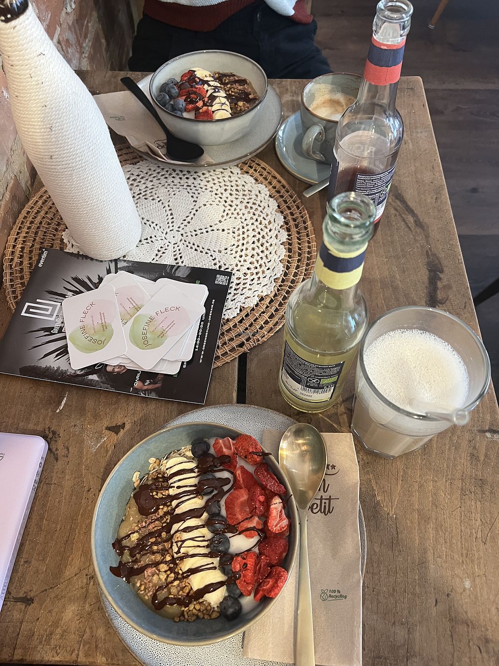 Das Essen dort ist sehr lecker, ich hatte eine süße Frühstücksbowl mit einem Chai Latte dazu und Mittags noch eine Tomatensuppe. Die Inhaber kennen sich sehr gut mit ihren Produkten aus und wissen auf Nachfrage auch Bescheid, ob das Produkt vegan ist.
