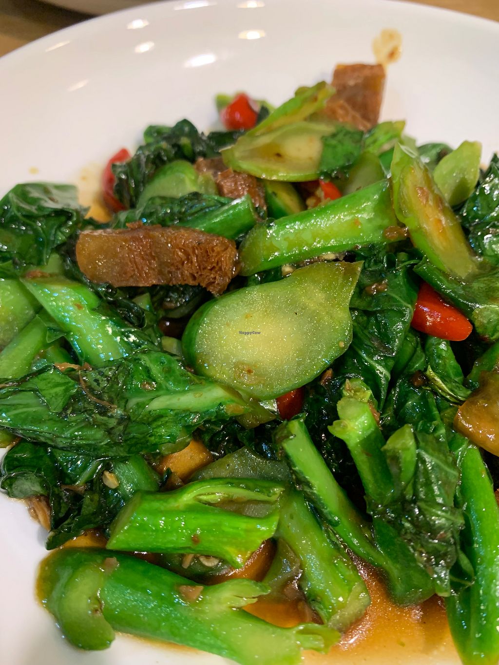 Large separate vegan menu. Super reasonable prices for tasty meals. Vegan ‘meat’ options. We had morning glory with vegan pork, long beans with vegan pork and red pork with rice plus an extra rice for 2 of us (one very hungry!) - portions not large - but was still under 200 baht all up.