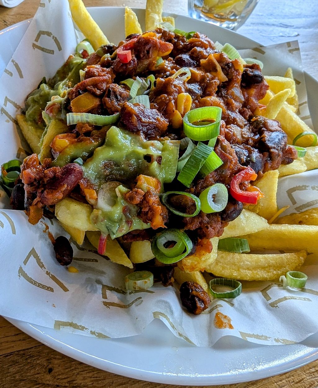 They do offer a few vegan options. I choose the loaded fries with Chili Sin Carne and vegan Cheddar - they were really tasty!