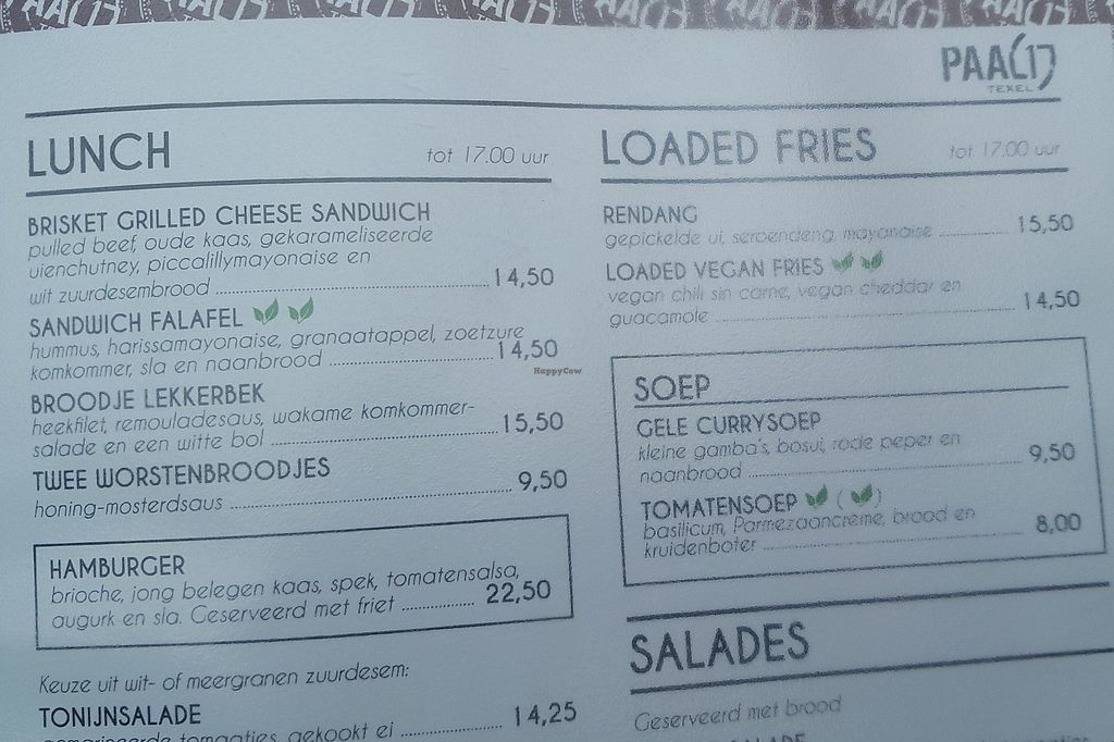 Paal 17 has vegan options, but not much. The loaded chili sin carne fries were good! Good for a group with people with a mixed diet. Staff is friendly and the view is great ;)
