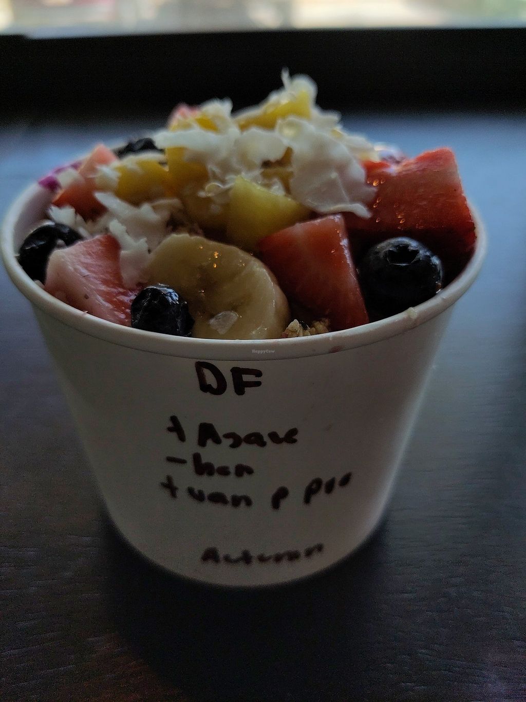 The cashier was super nice and accommodating! He brought out the granola box so I could read the ingredients (the gluten-free one at least is vegan, contains soy). They offer vanilla and chocolate pea protein (awesome option for health-conscious vegans looking to up their protein intake on vacation) for both smoothies and bowls. I got a dragonfruit bowl with agave instead of honey and it was delicious!