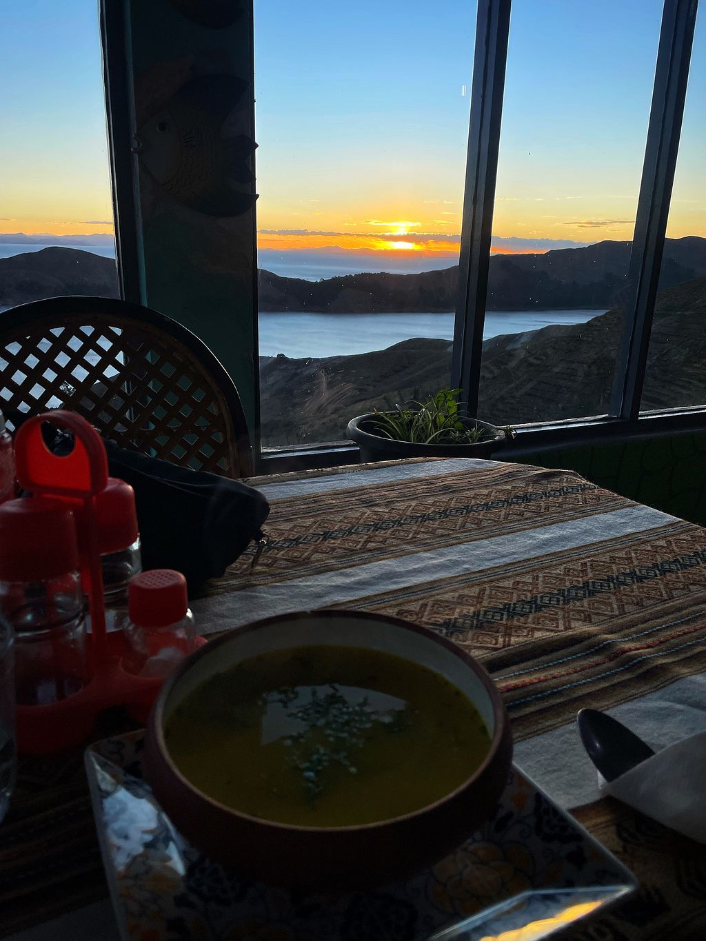 Serves meat, vegan options available. Restaurant in Comunidad Yumani in the southern part of Lake Titicaca. Vegan options include quinoa soup, spaghetti Napoletano and fruit salad. Open Mon-Sun 9:00am-9:00pm.