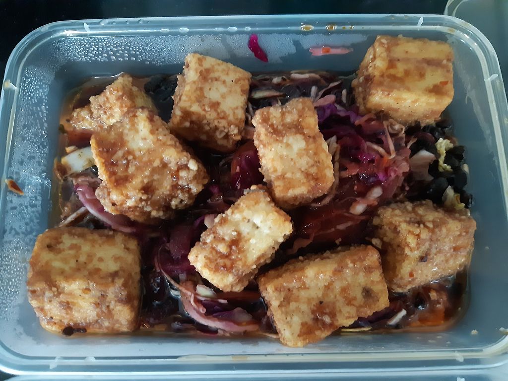 Green lentil onion salad with soy sauce, zucchini slaw and calamansi y…
