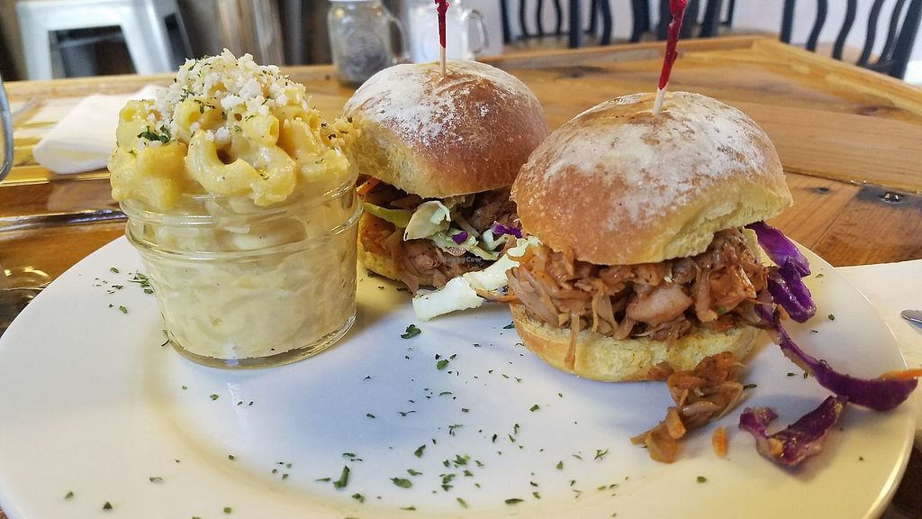 BBQ Jackfruit sliders with mac and cheeze side!! To die for!