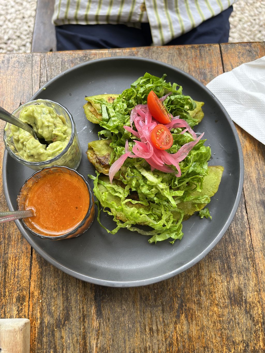 Gem of a place and such a relief to arrive in Valladolid and find a decent meal straight away. Several vegan options, I went with the salad option which is what I wanted after a run of stodgy options available at places days before. Nuts, seeds, olives all on offer. Would be keen to try the other options though, maybe tomorrow! Excellent service from Christian who was so lovely and explained a few of the plants in the garden which are used in Mayan cooking. The courtyard looked cool with nice lighting and warm wood furniture to sit at. Made for a really lovely evening with my husband