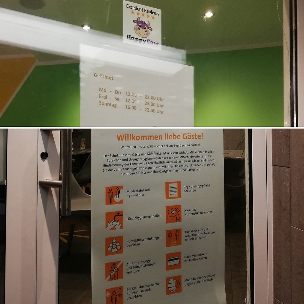 HappyCow Aufkleber, Öffnungszeiten und Corona Hinweis