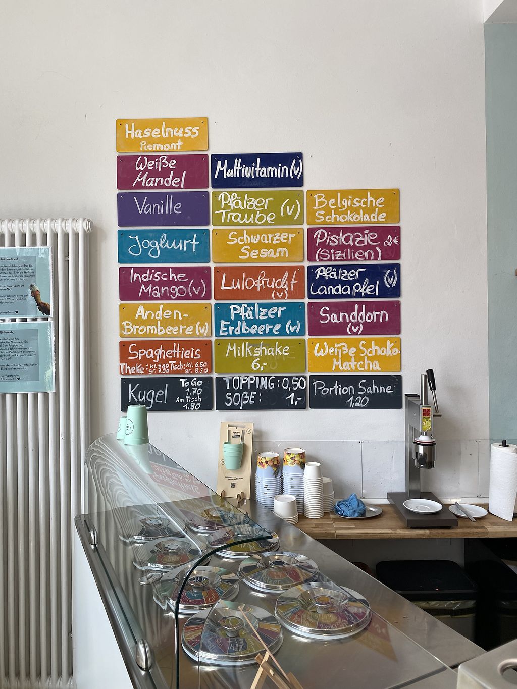 Ich war zum ersten mal im Palatineis , wir waren zum Frühstück eingeladen. Es gibt ein veganes Frühstück welches aus zwei Broten mit Aufstrich und einem veganen Jogurt besteht. Es gibt Hafermilch und mehrere vegane Sorbeteis Sorten z.B Weintraube. Ich habe das Frühstück probiert und es war sehr lecker. Mehr vegane Optionen wären natürlich super.